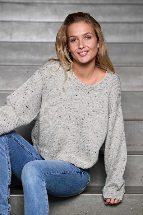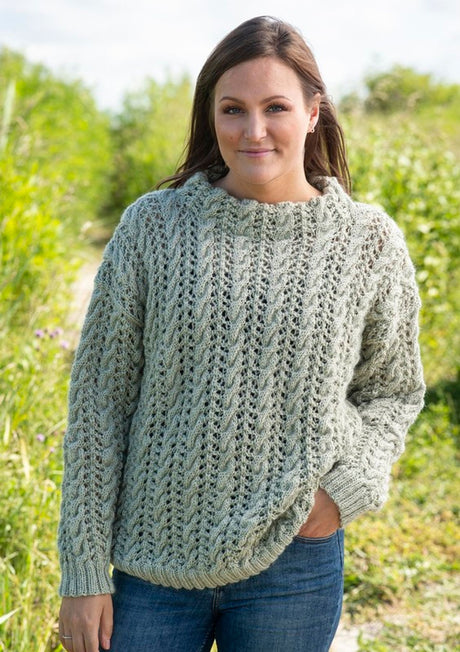 Frauenpullover mit hohlen Reihen auf den Ärmeln