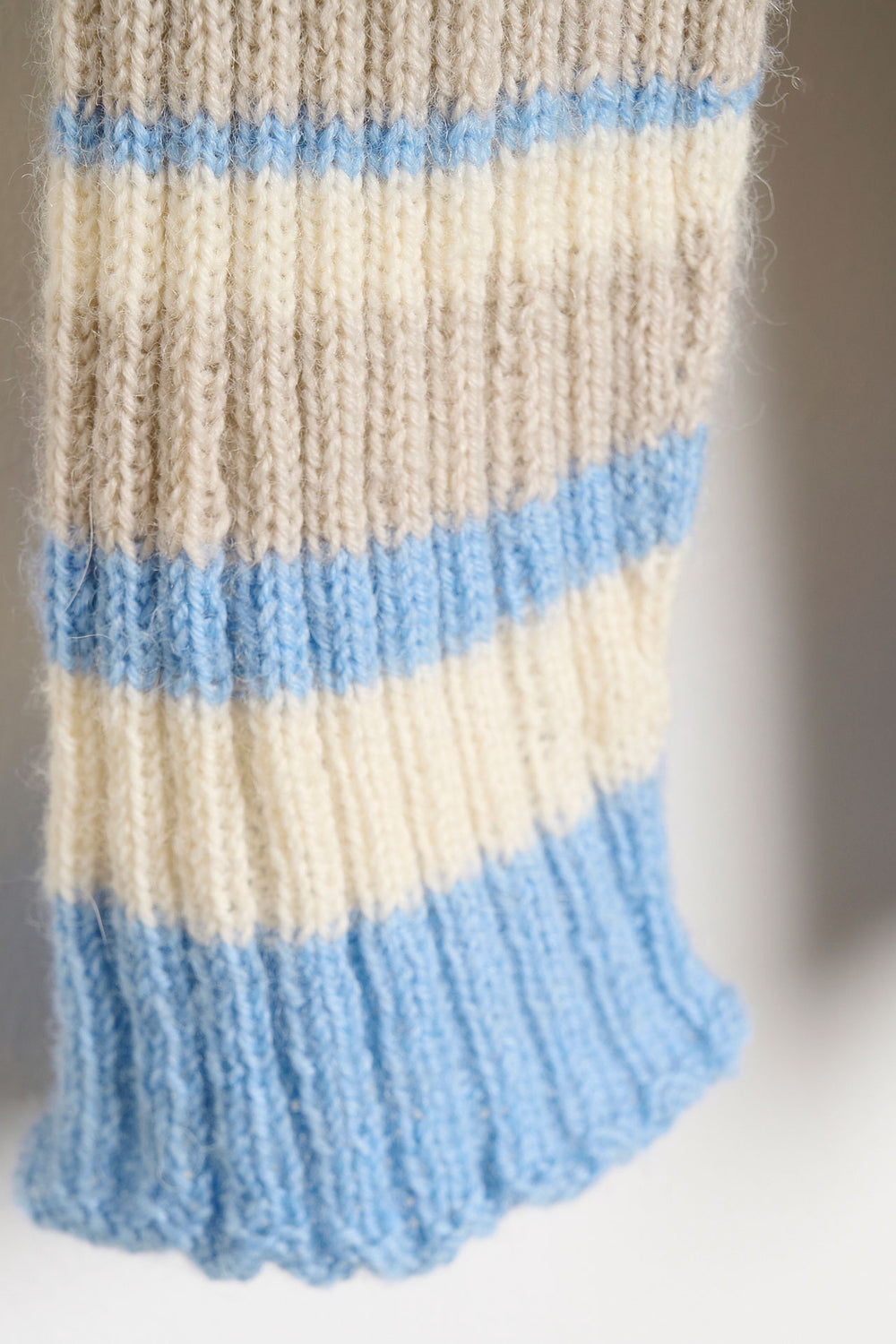 Opskriften er relativ begyndervenlig. Mønsteret er ribstrikket, hvilket betyder to ret og to vrang, og derudover skal du bare lave farveskifte, som angivet i opskriften.