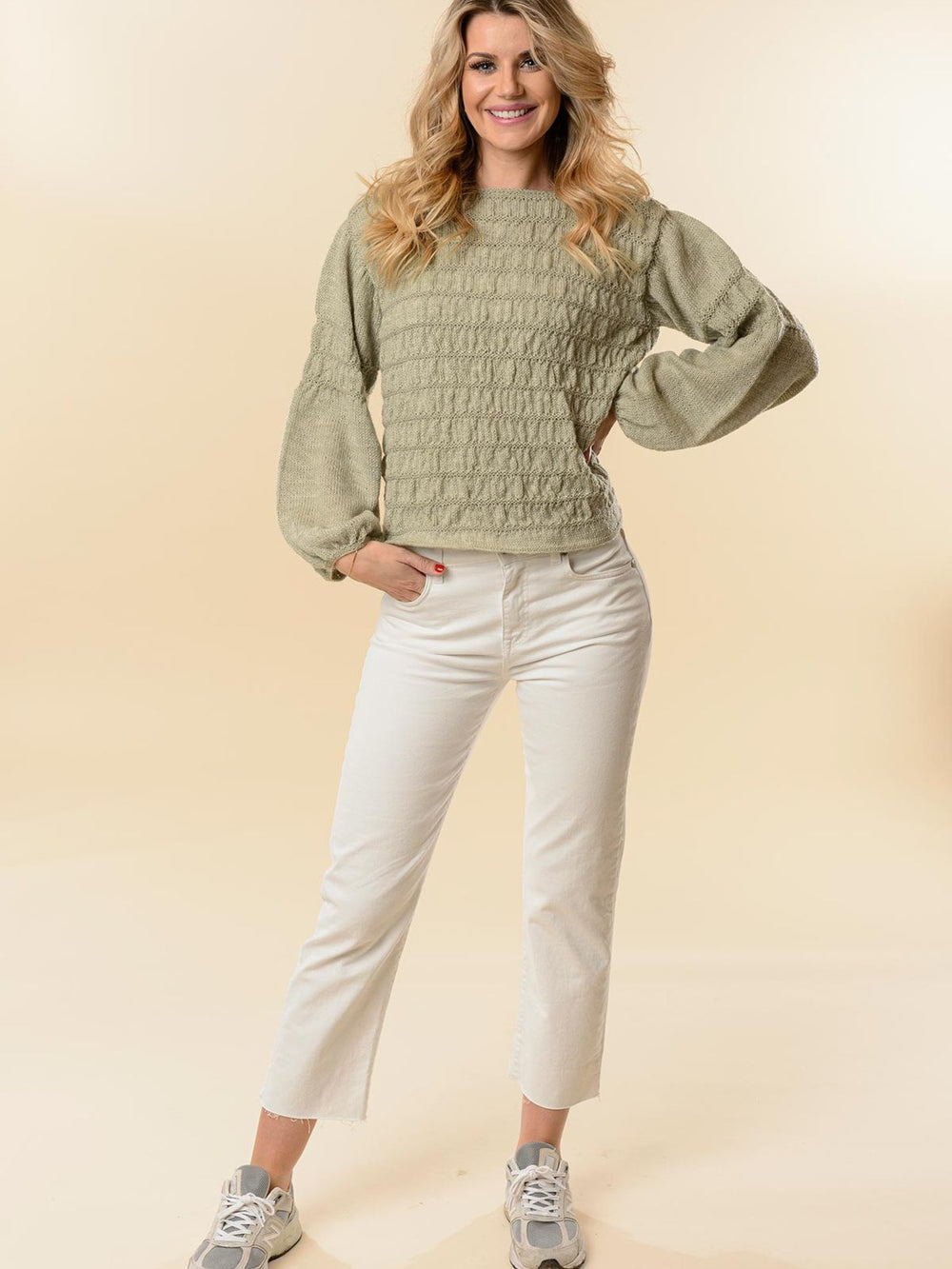 Strik er forbavsende alsidigt, og man kan opnå mange flotte effekter, hvis man har styr på sine strikketeknikker. Denne bluse er for eksempel designet med rynkede striber, som skabes ved at strikke et forholdsvis enkelt mønster af ind- og udtagninger.