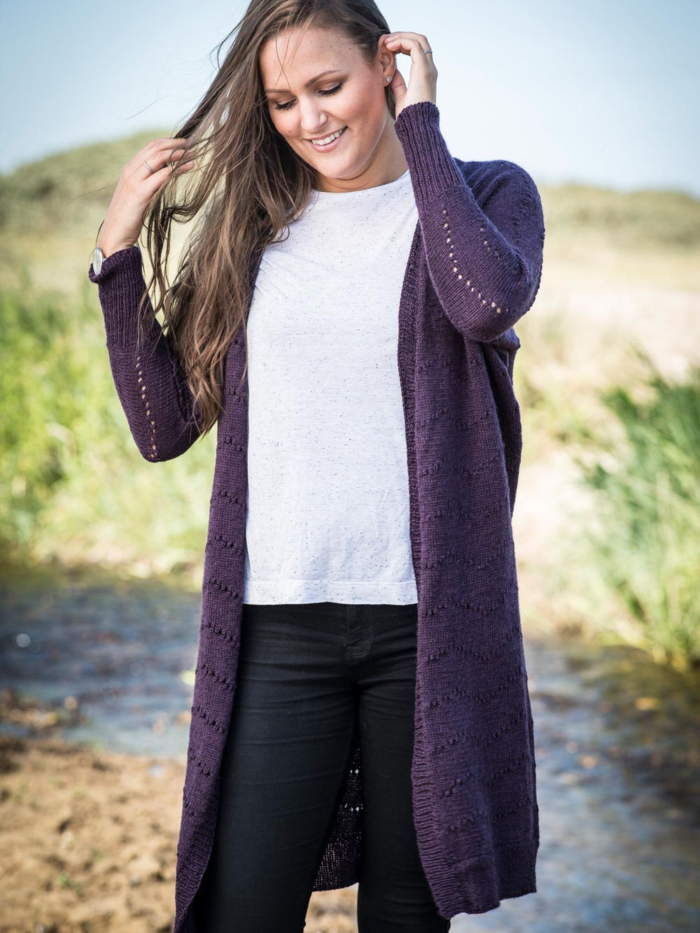 Cardigan med huller i bølger