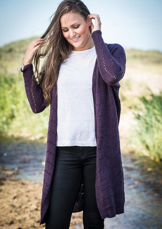 Denne lange cardigan kan give dig ekstra meget varme på de kølige dage, da den er strikket i uldgarnet Mayflower Easy Care, som giver både varme og god åndbarhed. Derfor er komforten i top, og cardiganen kan desuden maskinvaskes og tørretumbles, da garnet er superwash-behandlet.