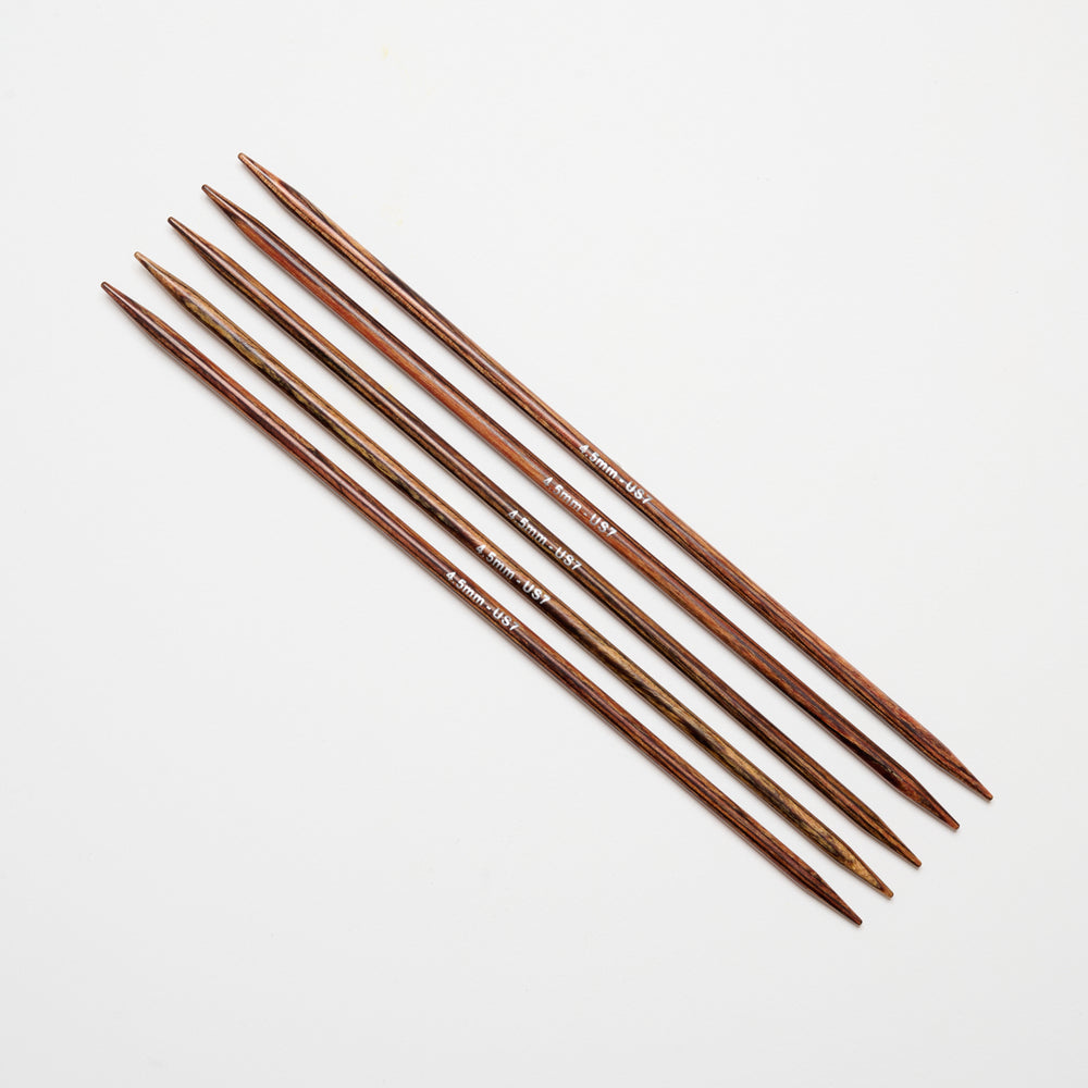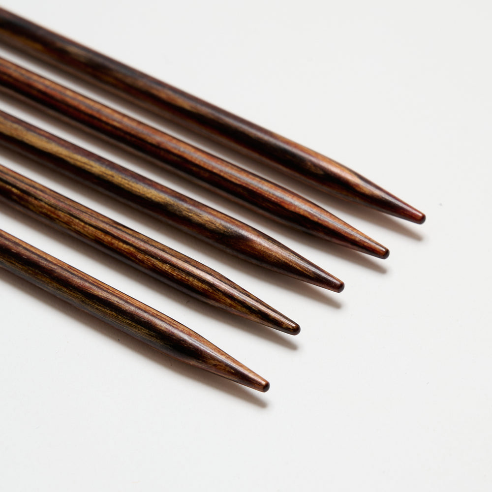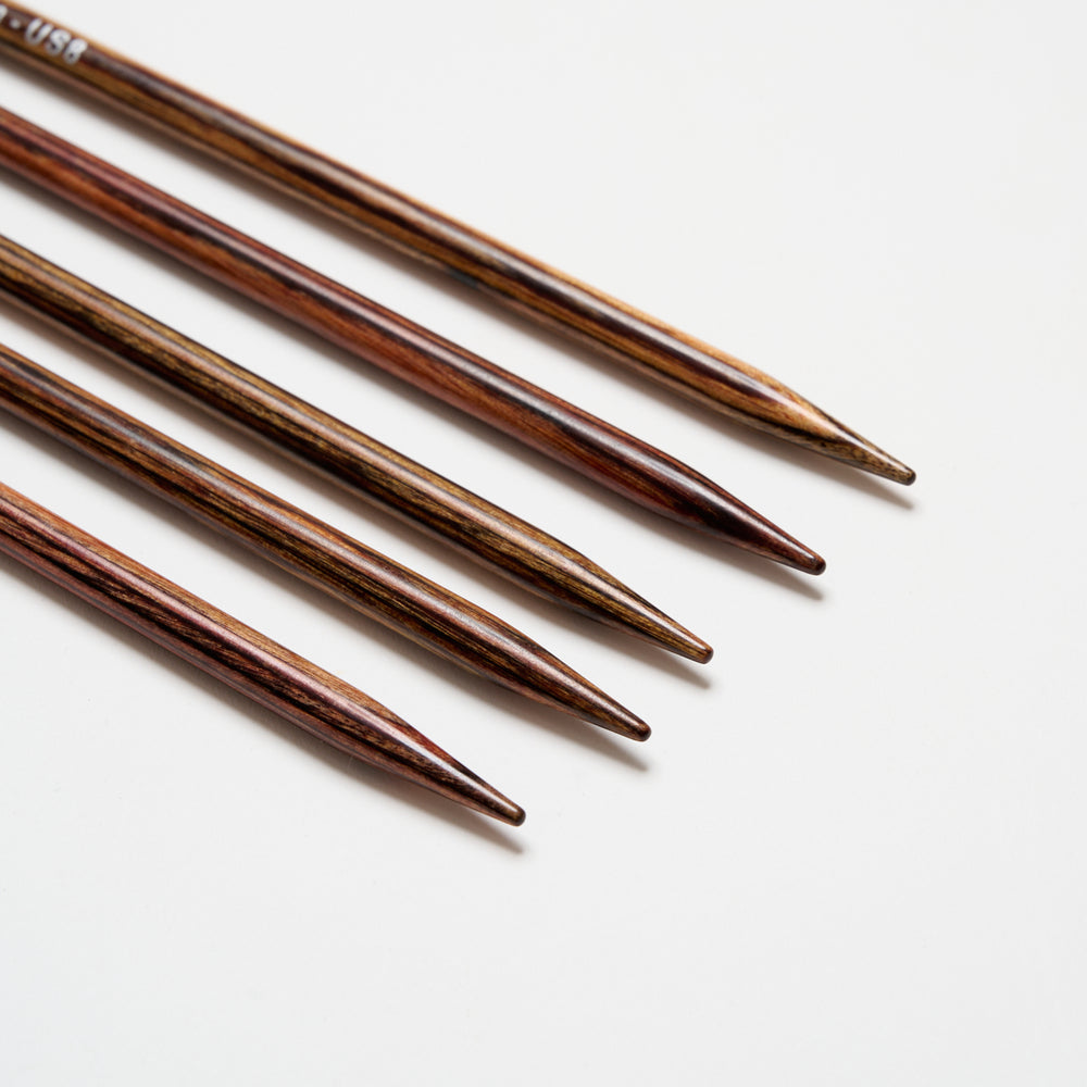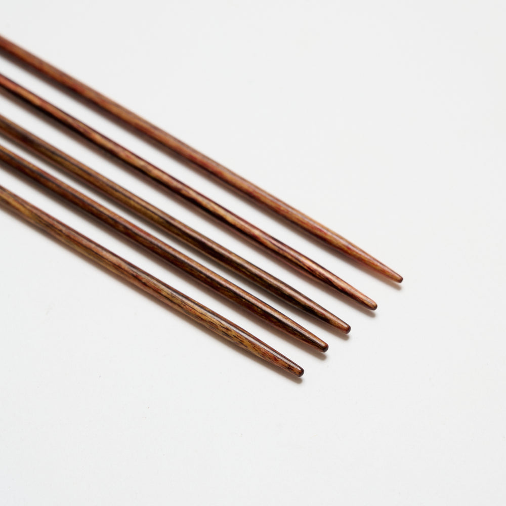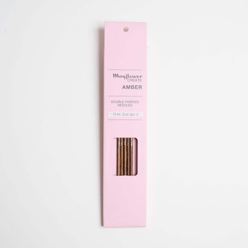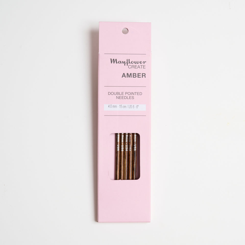 Strømpepinde i lakeret birketræ i to forskellige længder og flere forskellige tykkelser. Strømpepindende er en del af Mayflower Create Amber serien, som fx også indeholder et eksklusivt sæt med udskiftelige rundpinde, wirer mv.