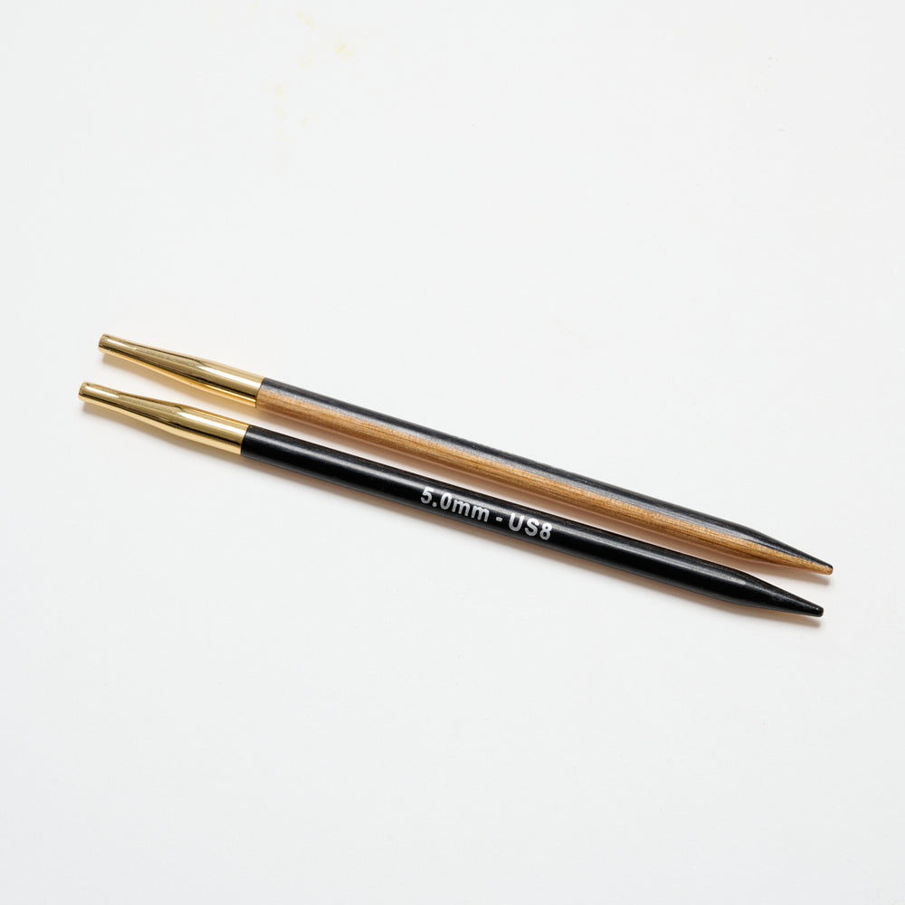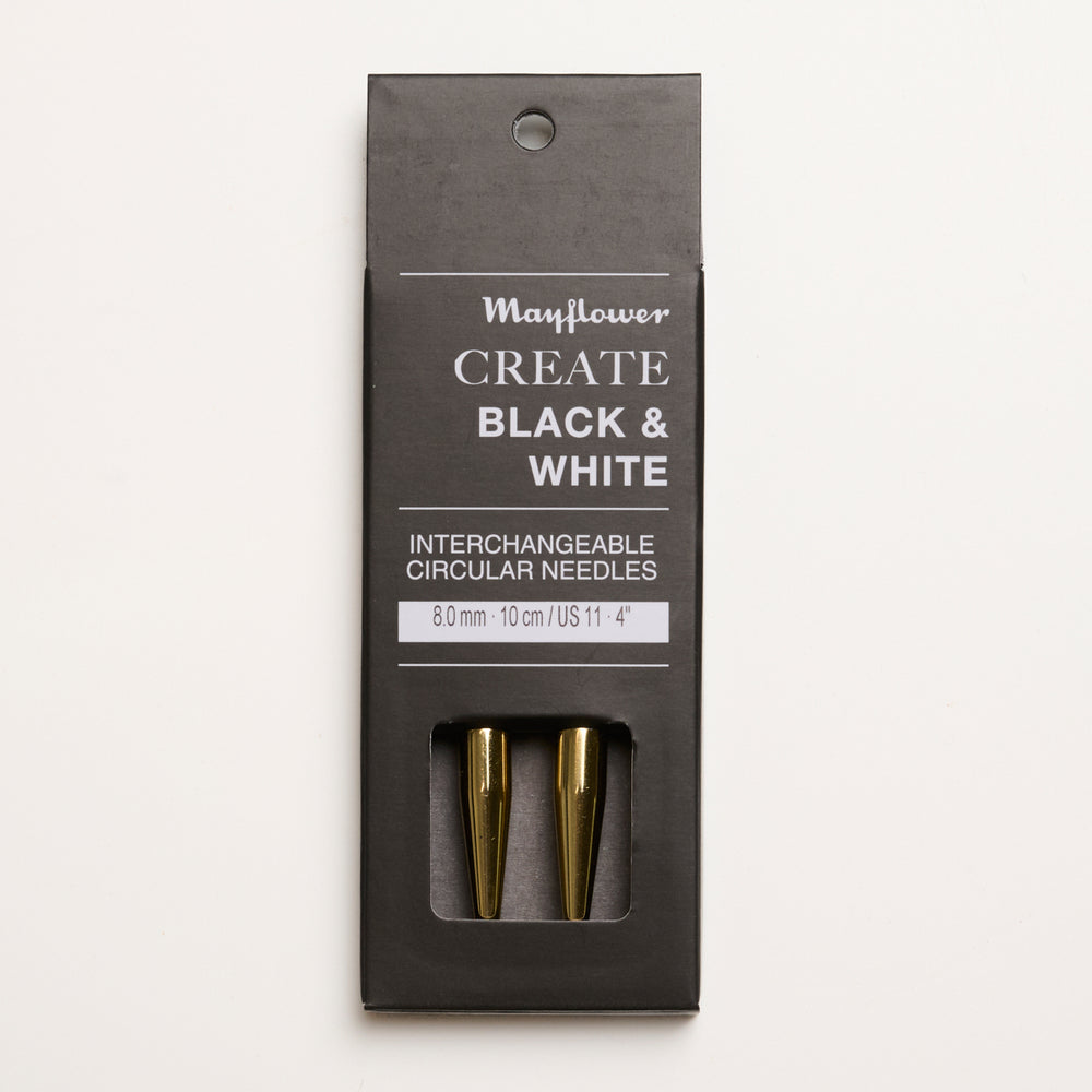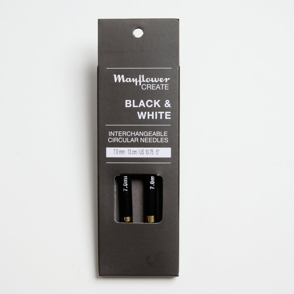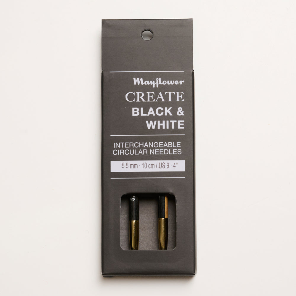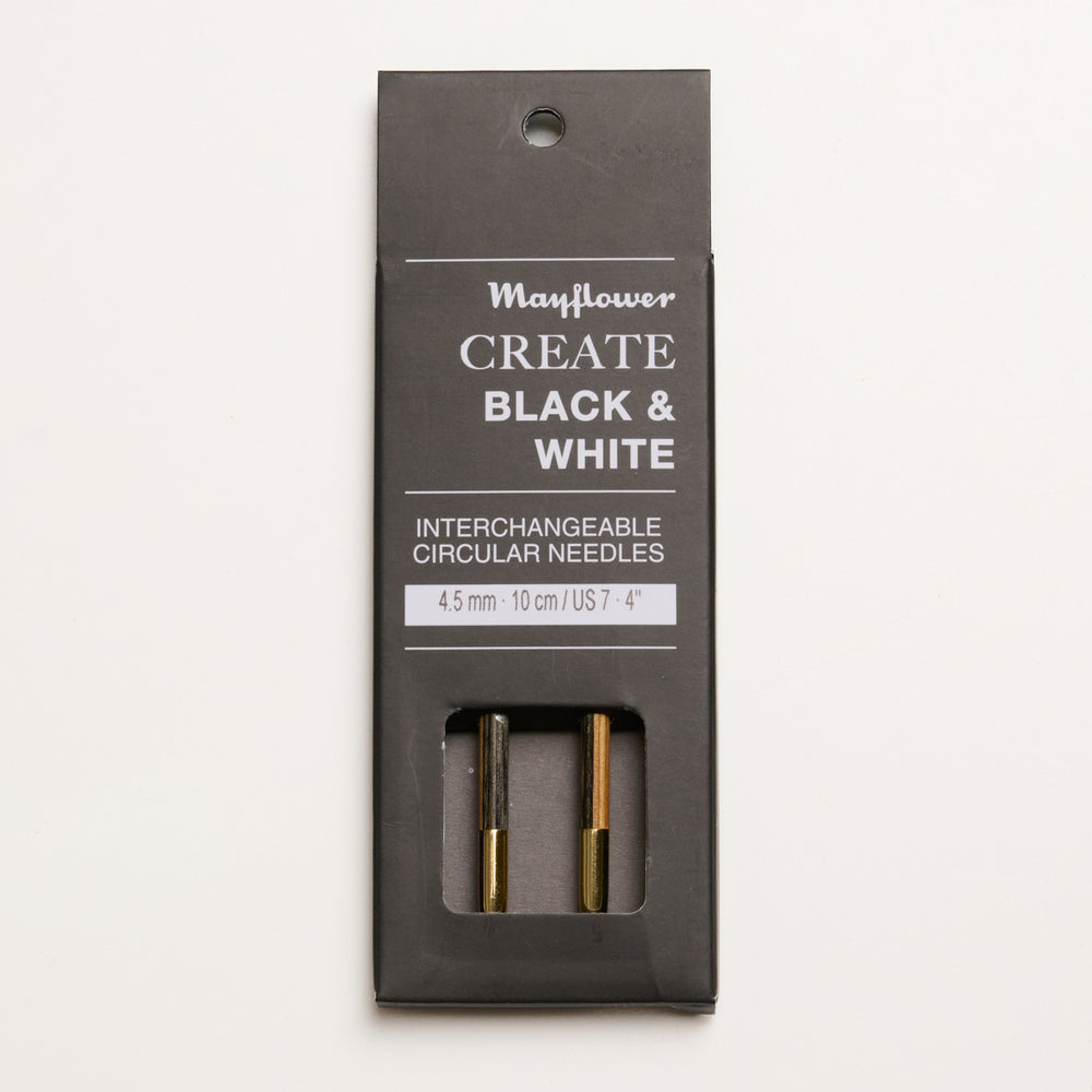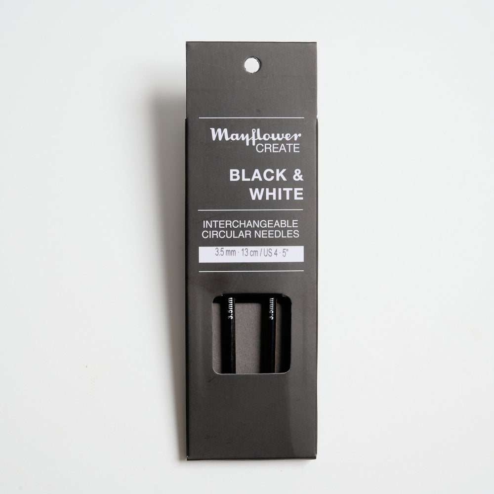 Dette design fås kun hos Mayflower, som i samarbejde med KnitPro har udviklet intuitive strikkepinde, som sikrer dig overblik over maskerne, uanset om du strikker med lyst eller mørkt garn. Ved at dreje strikkepinden til enten den hvide eller den sorte side opnår du en god kontrast mellem pinden og garnet. Pindene er fremstillet i birketræ med nikkelfri metalgevind. De udskiftelige pinde fås i længder på enten 10 eller 13 cm samt 9 forskellige størrelser og er en del af Black & White-serien, som bl.a. også indeholder strømpepinde.