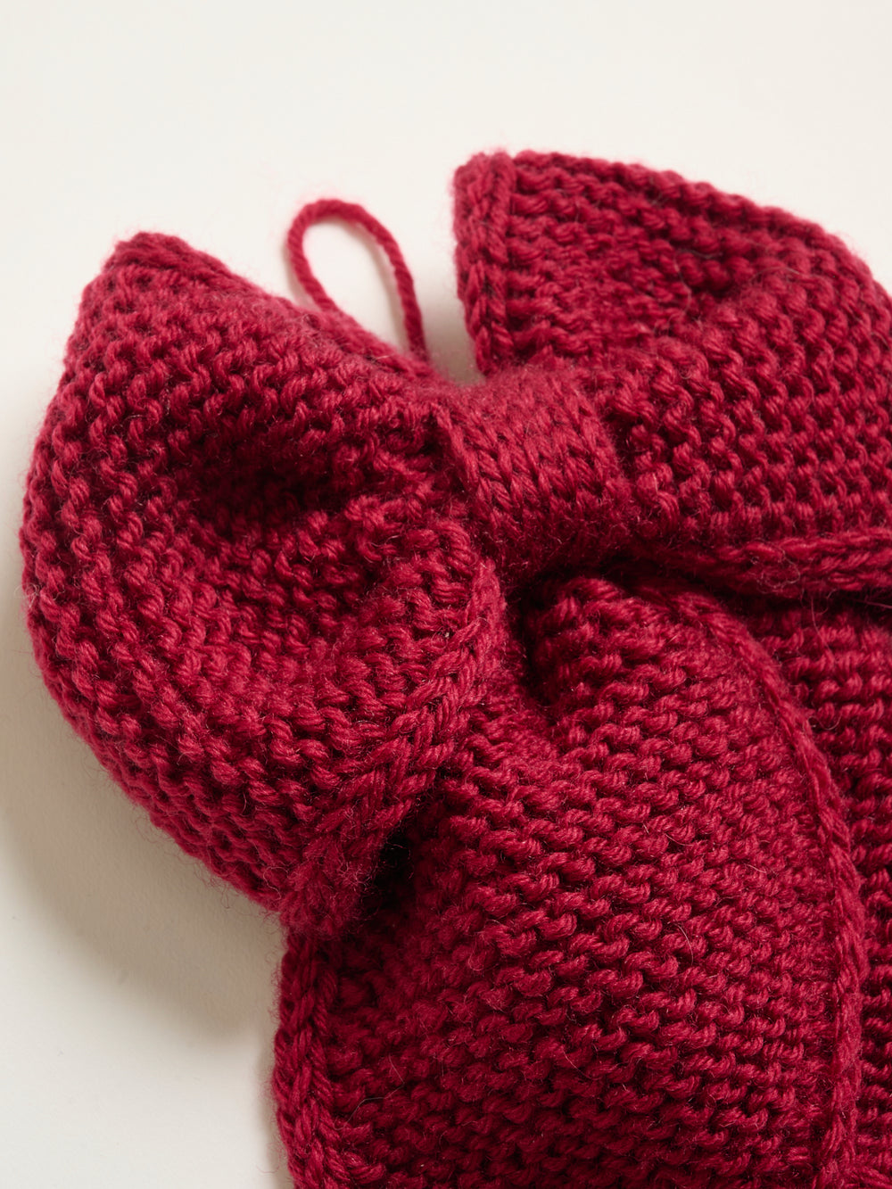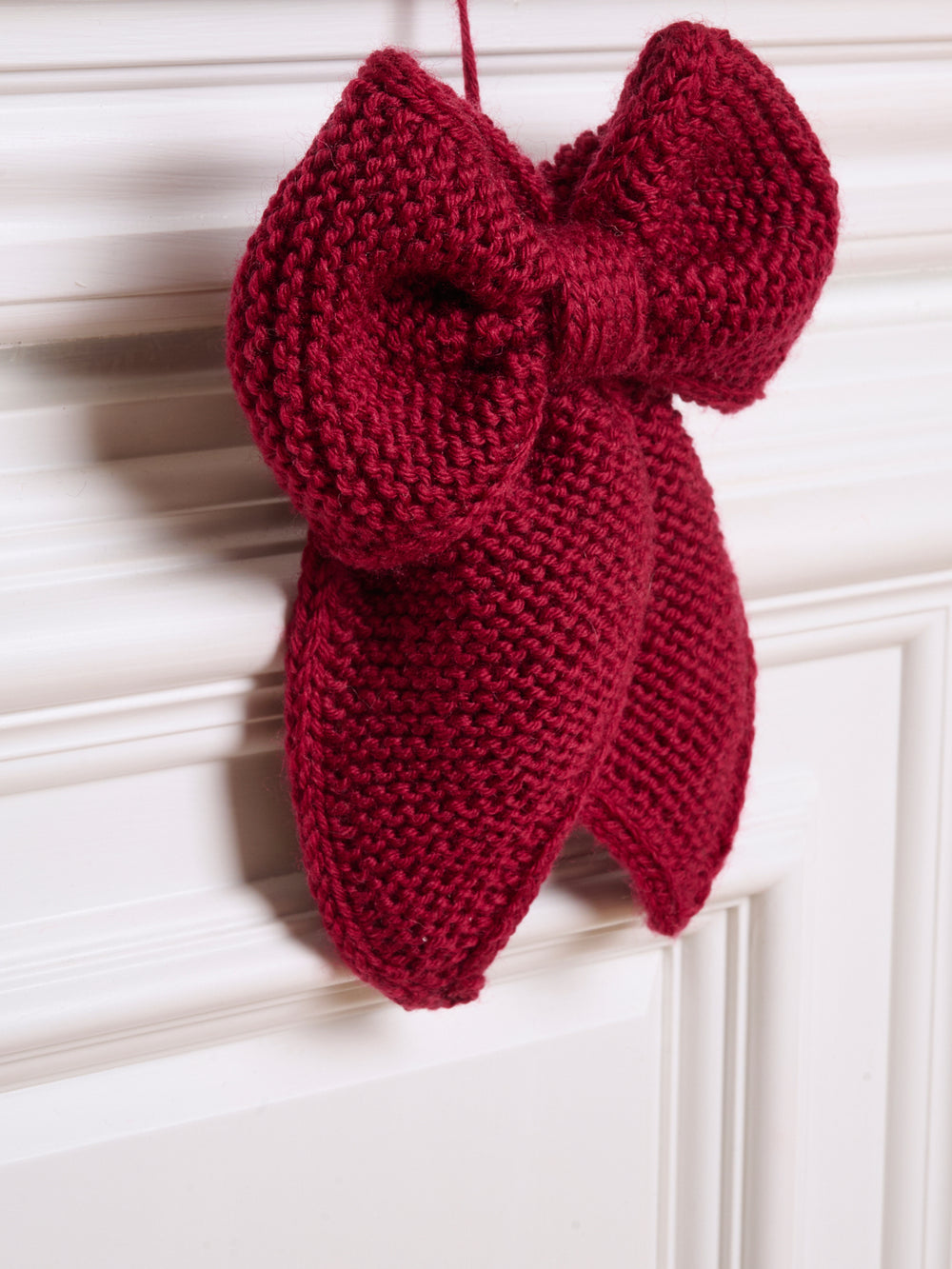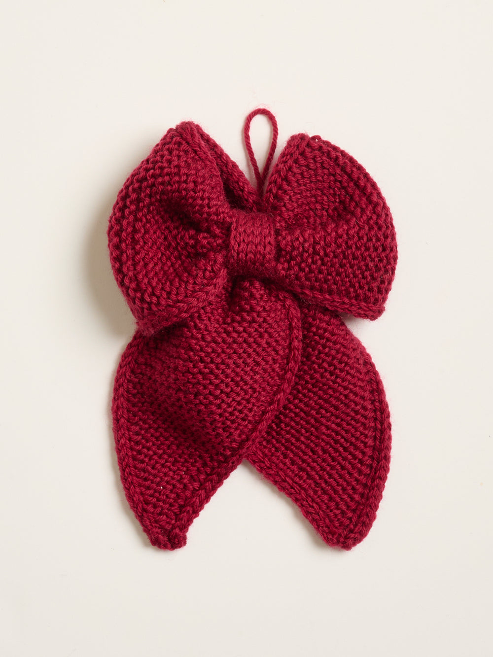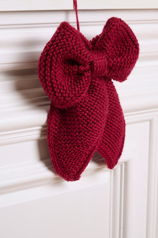 Strik en flot December Bow i det bløde uldgarn Mayflower Easy Care Classic.