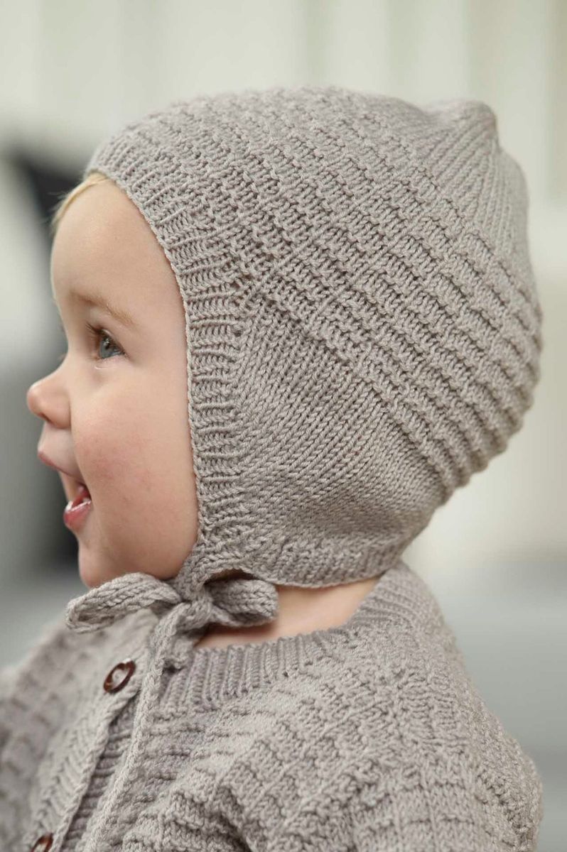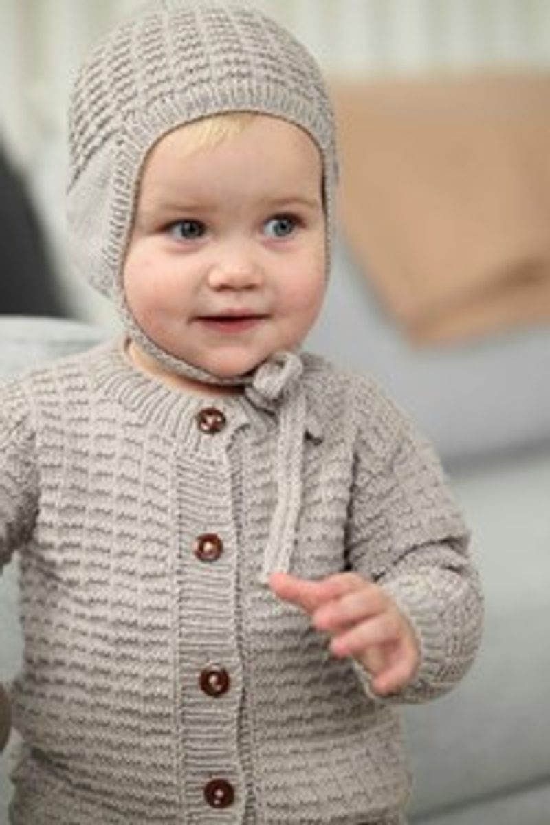 Blød og lun kyse i strukturmønster, som strikkes i en tynd og let uldkvalitet. Du har nok i blot ét nøgle. Kysens øreklapper går godt ned over barnets ører og skærmer godt for både vind og kulde.