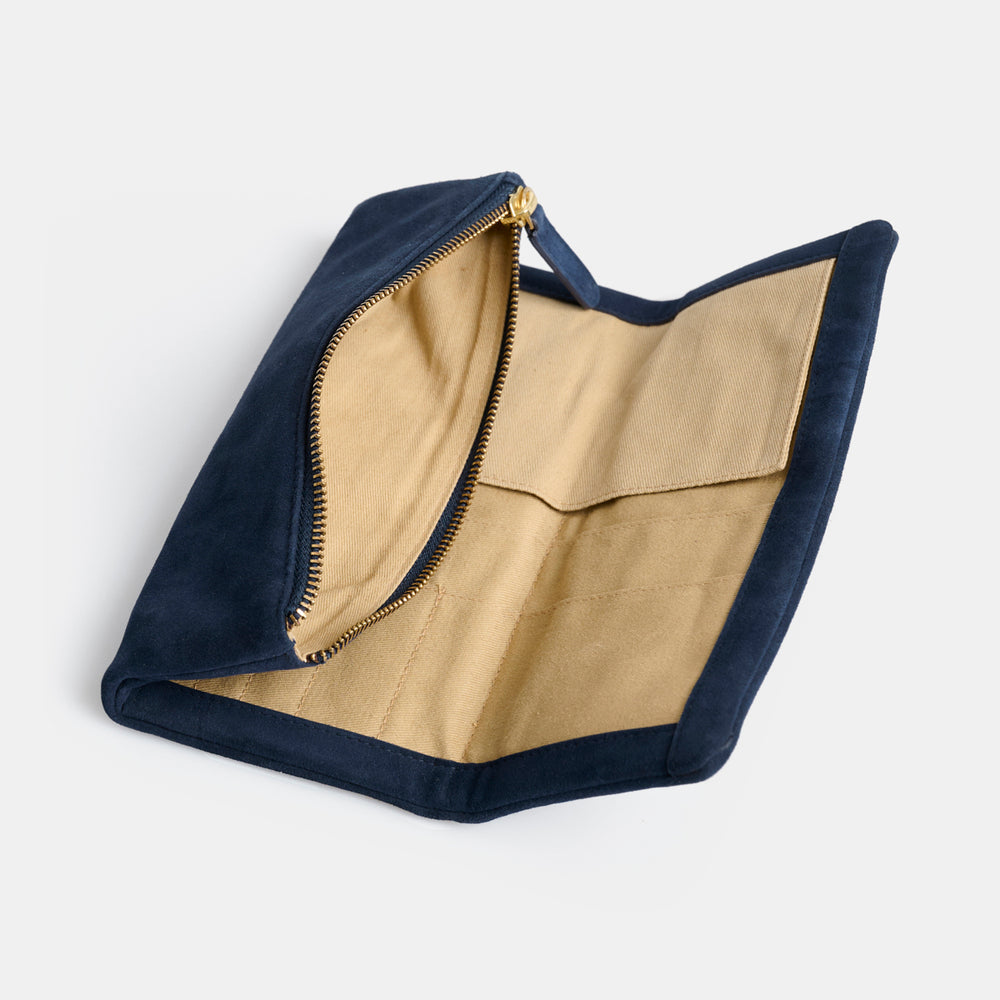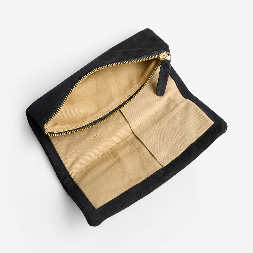 Enkelt og stilfuldt etui i ruskind til opbevaring af dine strikkepinde eller hæklenåle. Etuiet ligner en klassisk clutch med lynlåslomme, men er faktisk opbevaring af pinde og strikketilbehør. Størrelsen gør, at etuiet ikke fylder meget i en taske, hvis du skal have strikkepinde eller hæklenåle med på farten.