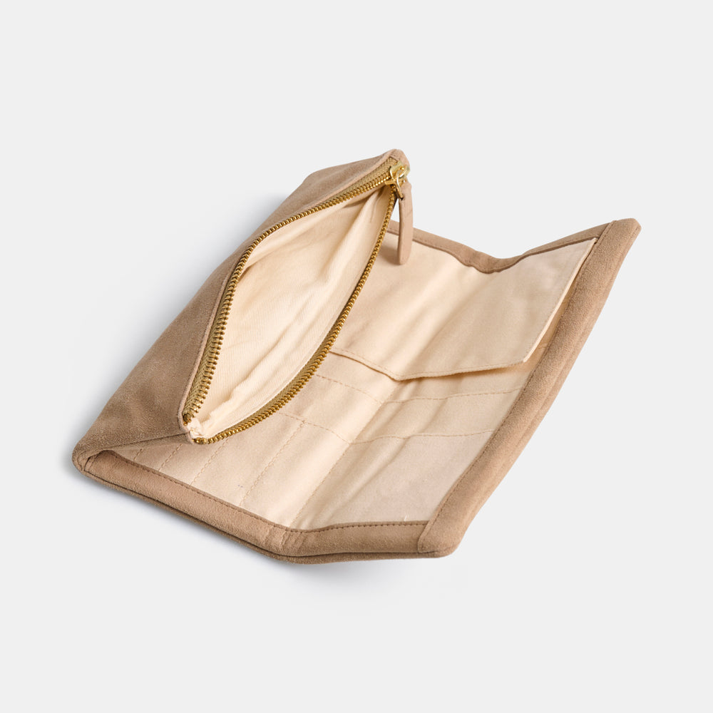 Ellie etuiet er produceret i lækkert, blødt ruskind, som er kendetegnet ved den karakteristiske opkradsede overflade og materialets smidighed. Etuiet føles derfor virkelig blødt og lækkert i hænderne.