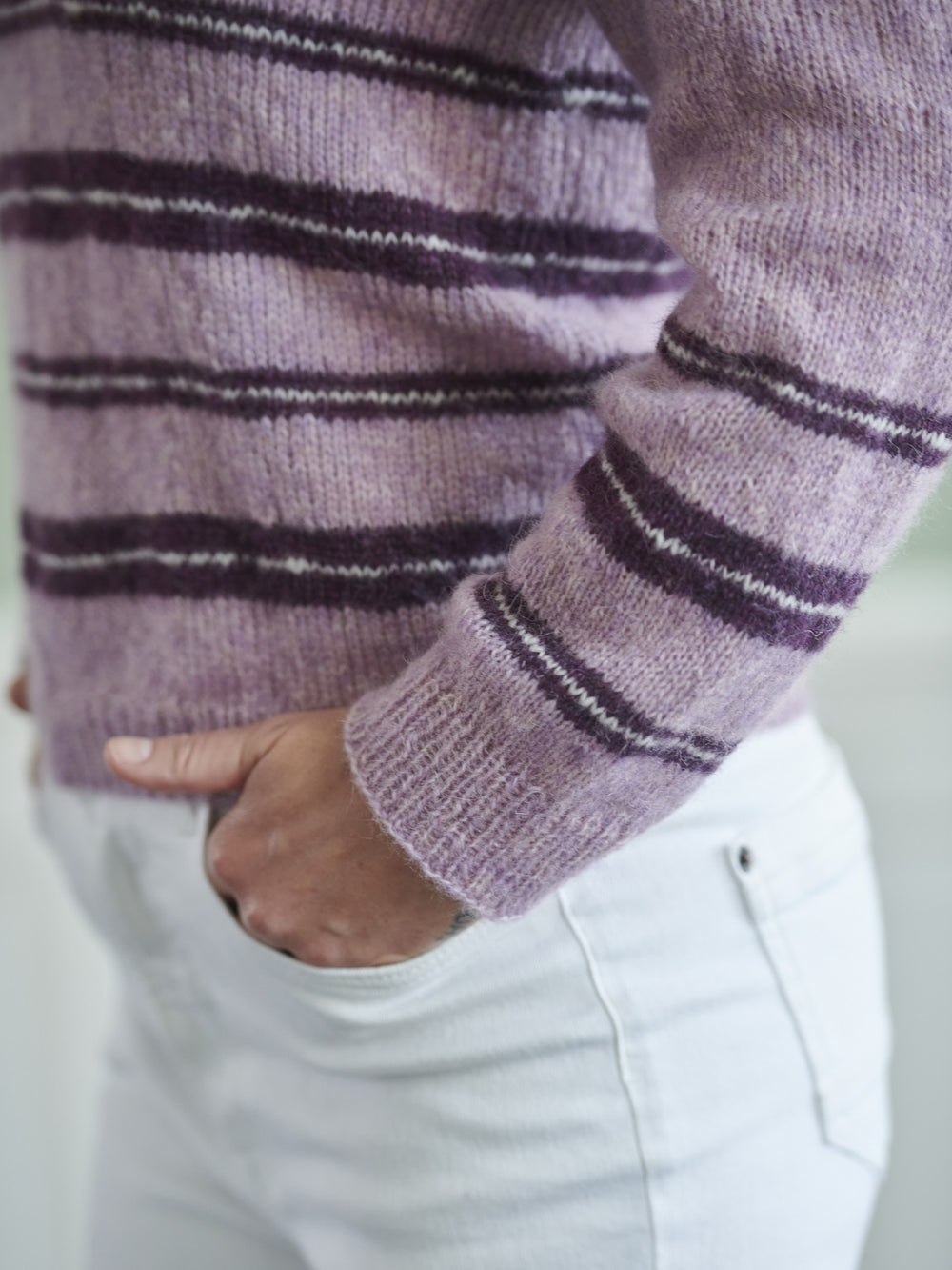 Denne smukke sommerbluse er strikket i den lette Santiago Light, som giver den et florlet udtryk. Den er strikket rundt, nedefra og op, hvor den bliver delt til forstykke og ryg ved ærmegab. Ærmerne strikkes oppefra og ned, så du nemt kan justere ærmets længde, så det passer dig.