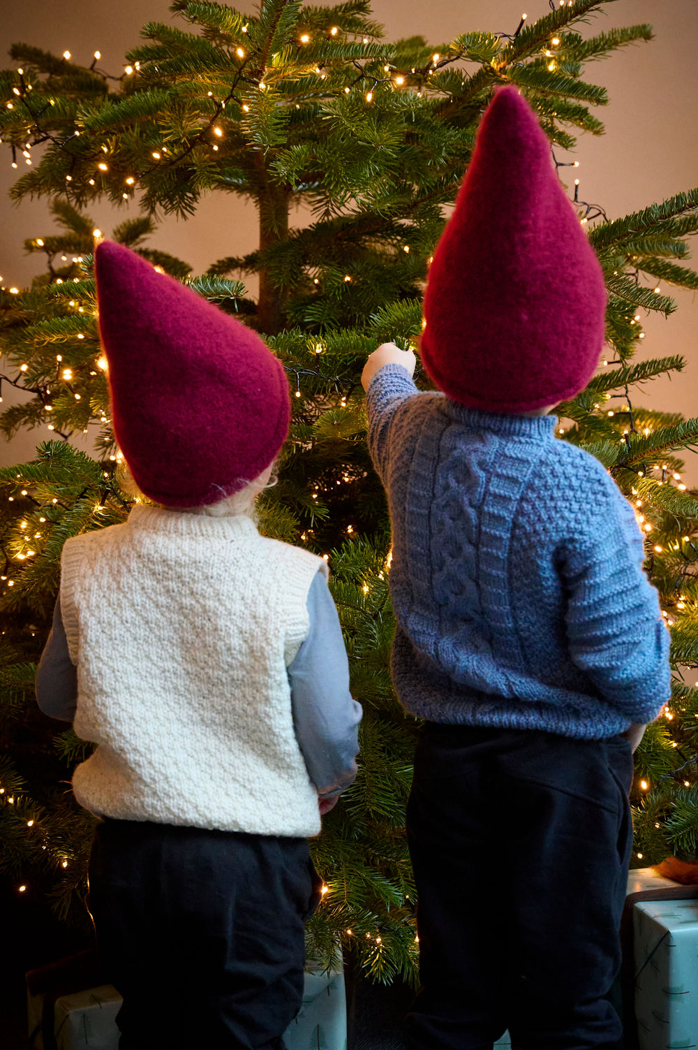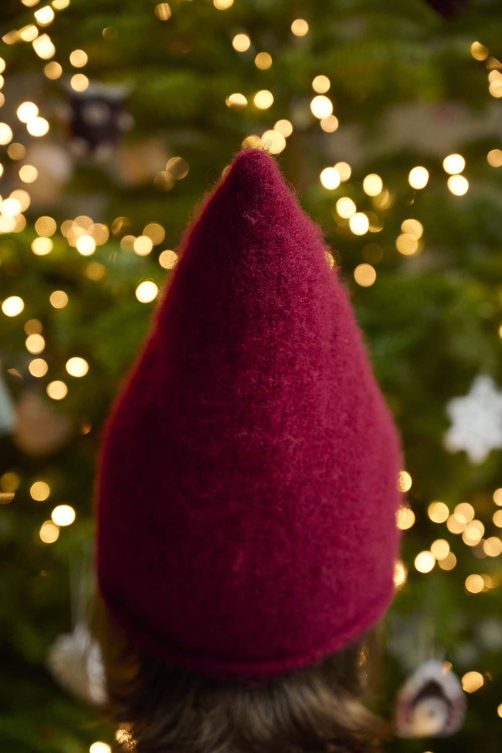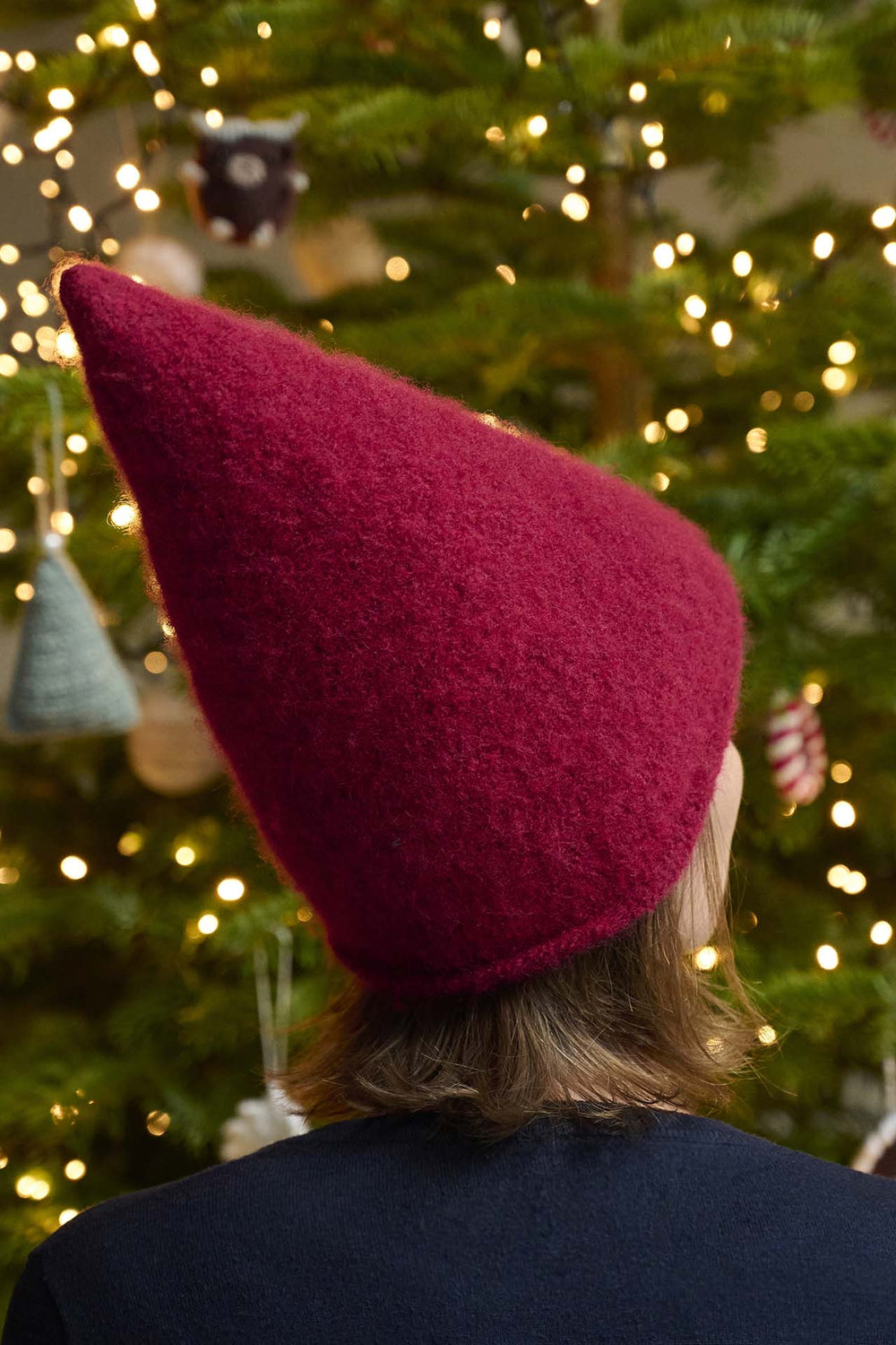 Denne superfine nissehue er strikket og derefter filtet. Dette giver huen et helt perfekt og hyggeligt udtryk. Huen er nøje sammensat i facon, enkelthed og anvendelighed, så den sidder virkelig godt på hovedet og kan nemt bruges af både børn og voksne. Den er virkelig fin at have på udendørs, fordi filtningen gør huen ekstra fast og dermed vindtæt og varm. Opskriften er helt enkelt, så alle kan være med.