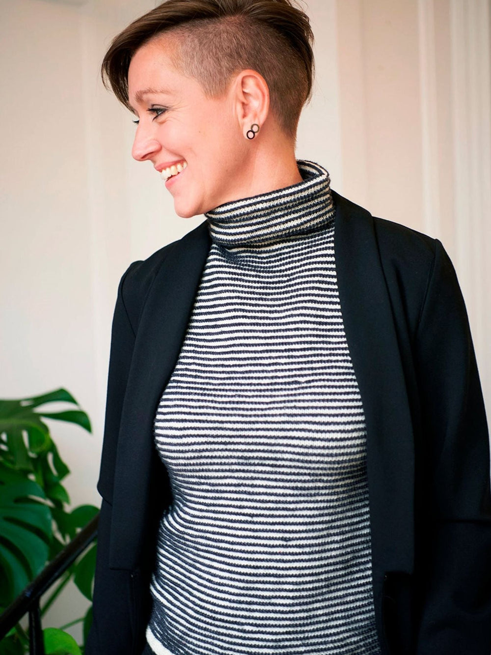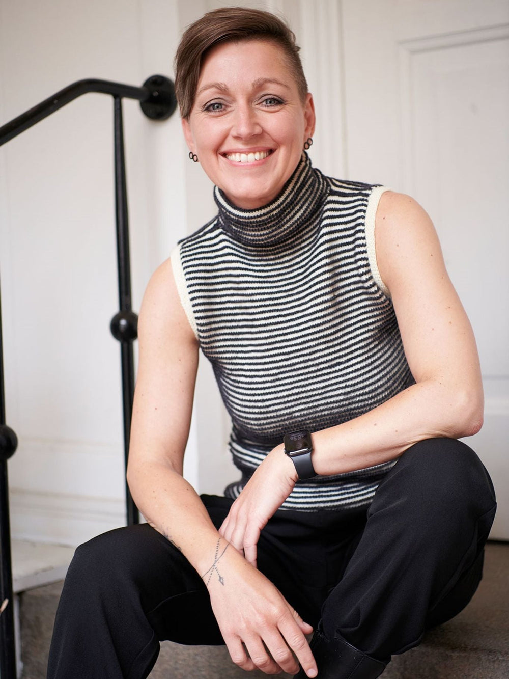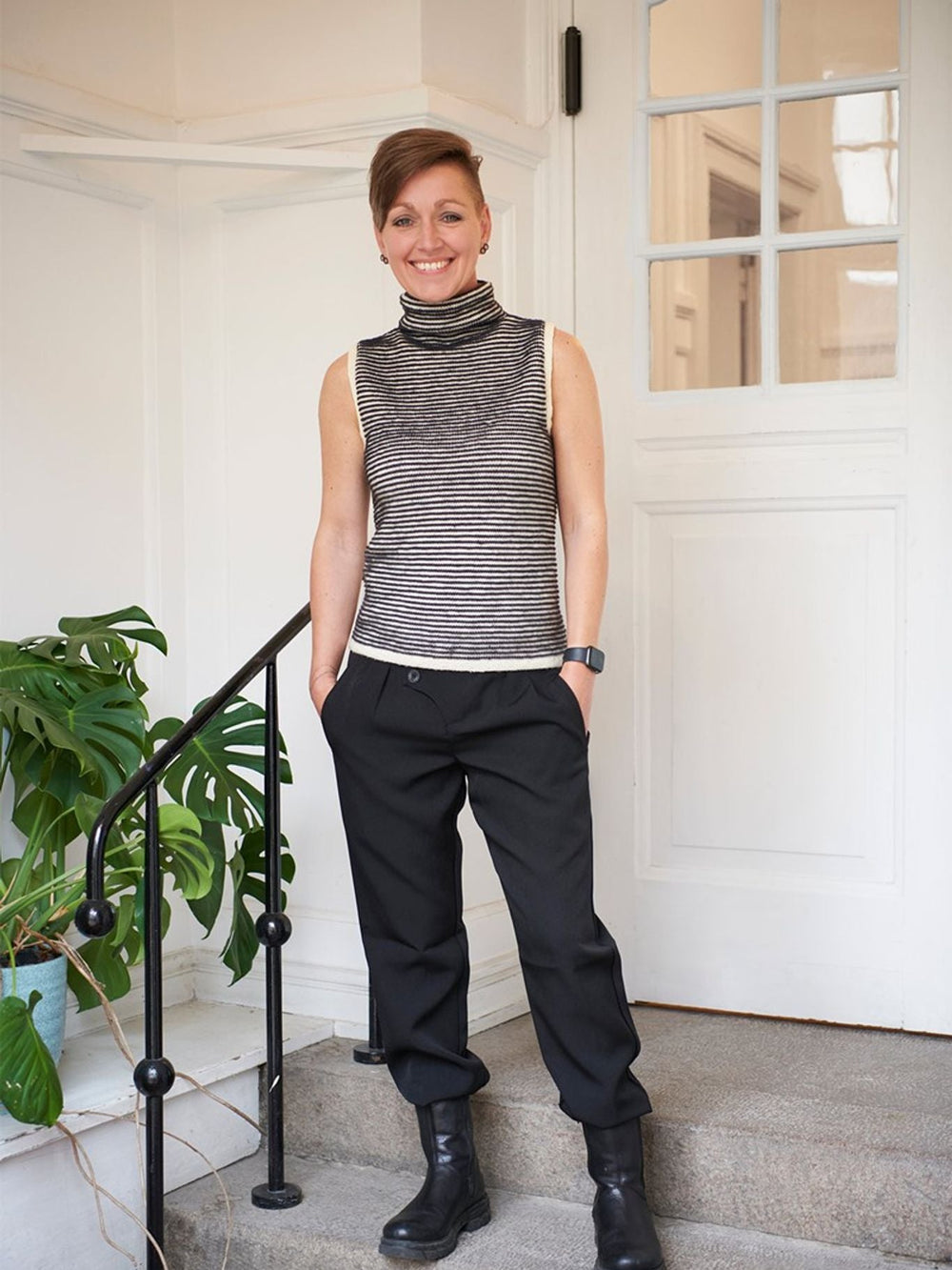 En virkelig lækker og fin vest, som har en enkelt udtryk og samtidig de lækreste detaljer. Den stribede vest er flot for sig selv, ligesom den også er god at sætte sammen med fx en blazer, og rullekraven giver vesten mere karakter.