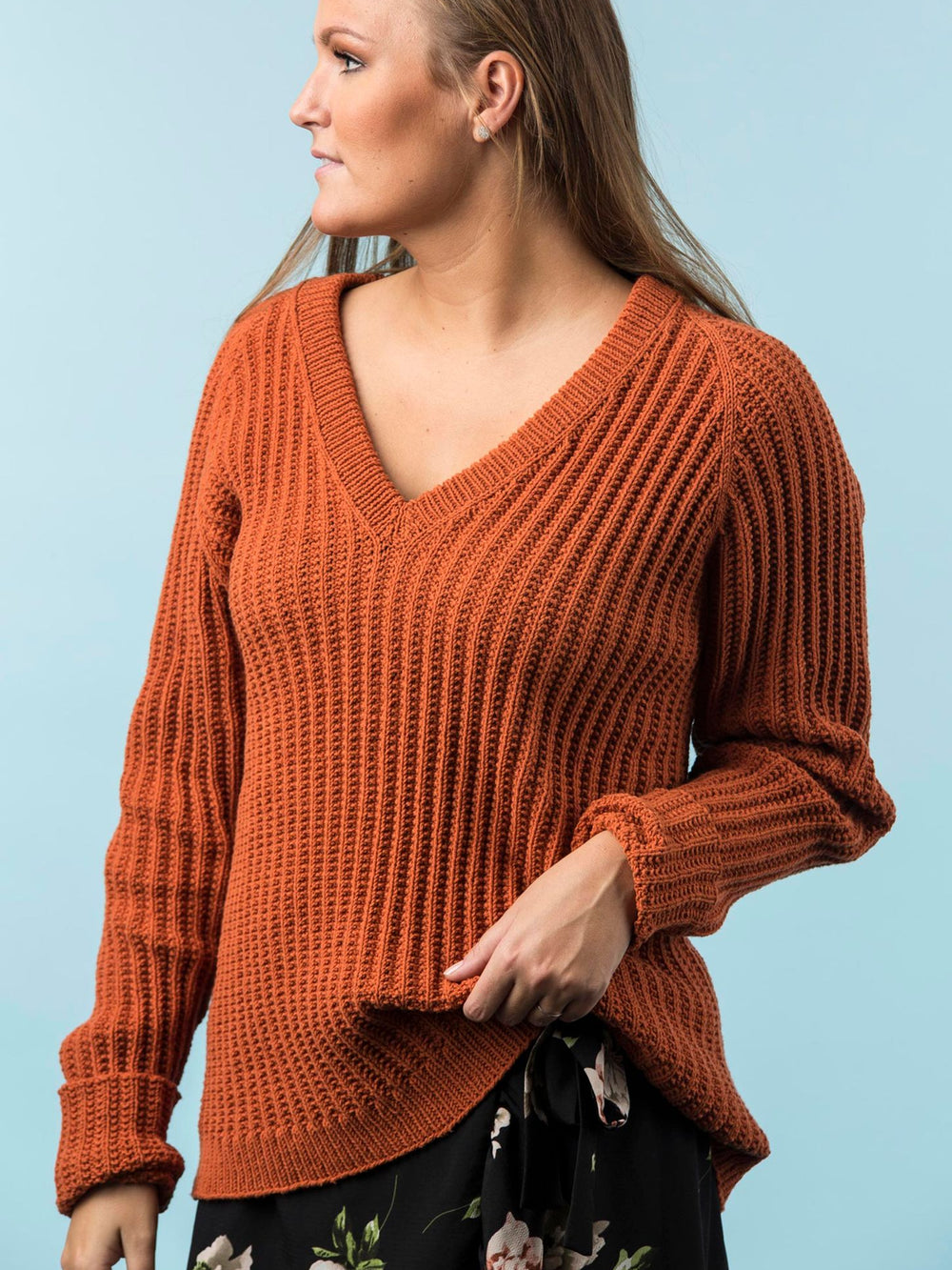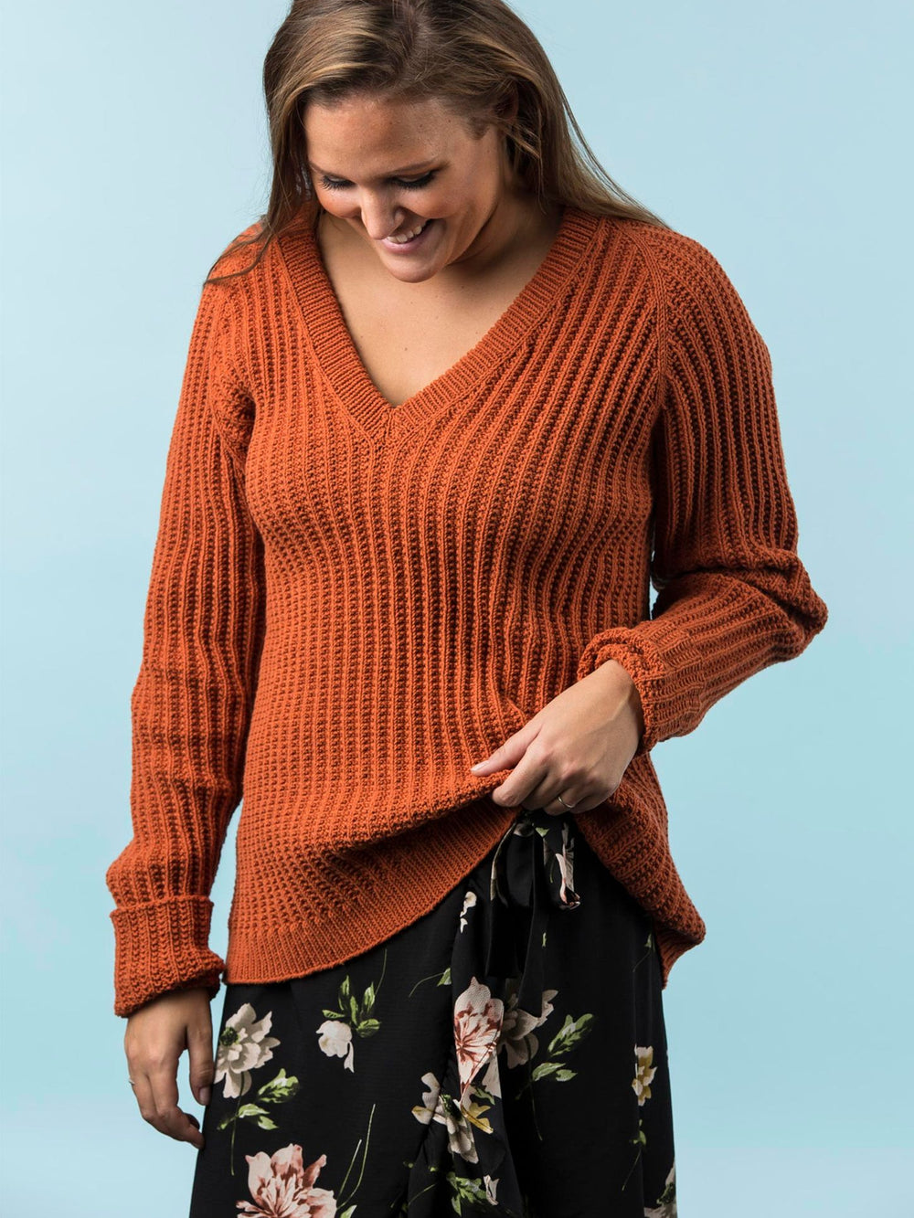 Opskriften på denne sweater er primært tiltænkt de lidt mere øvede strikker, da der indgår en del forskellige strikketeknikker. Ingen af dem er videre svære, men til sammen kan de godt blive en stor mundfuld, hvis du stadig er nybegynder. Udover den falske patent og v-halsen har sweateren nemlig også raglanærmer, hvilket også kan være en udfordring, hvis du ikke har prøvet det før.