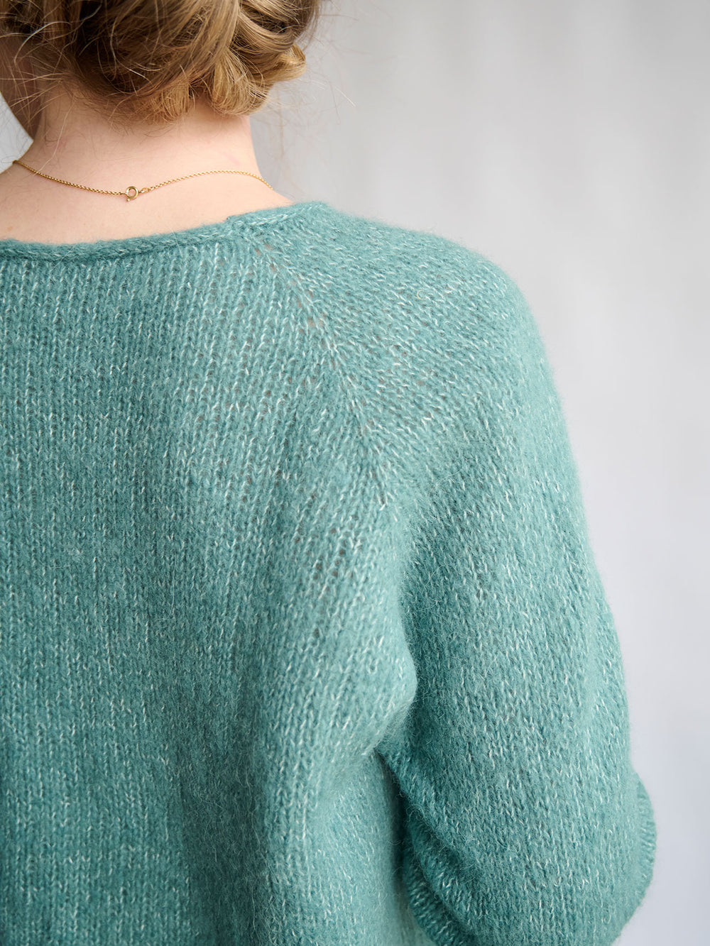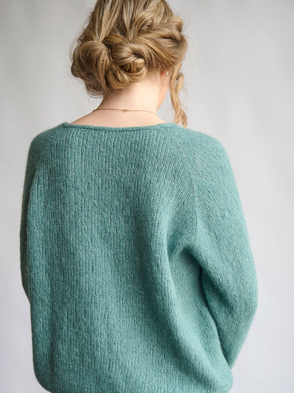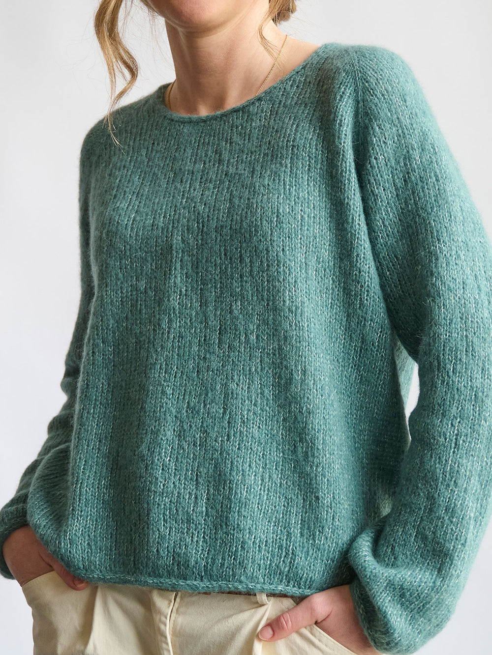 Denne version af Kumulus bluse o-neck er strikket i 1 tråd Mayflower Premium Valentina, hvilket giver det ønskede og let vamsede udtryk. Blusen bliver florlet og lækker at have på. Garnet er nemlig spundet en blanding af alpaka, uld og bomuld.