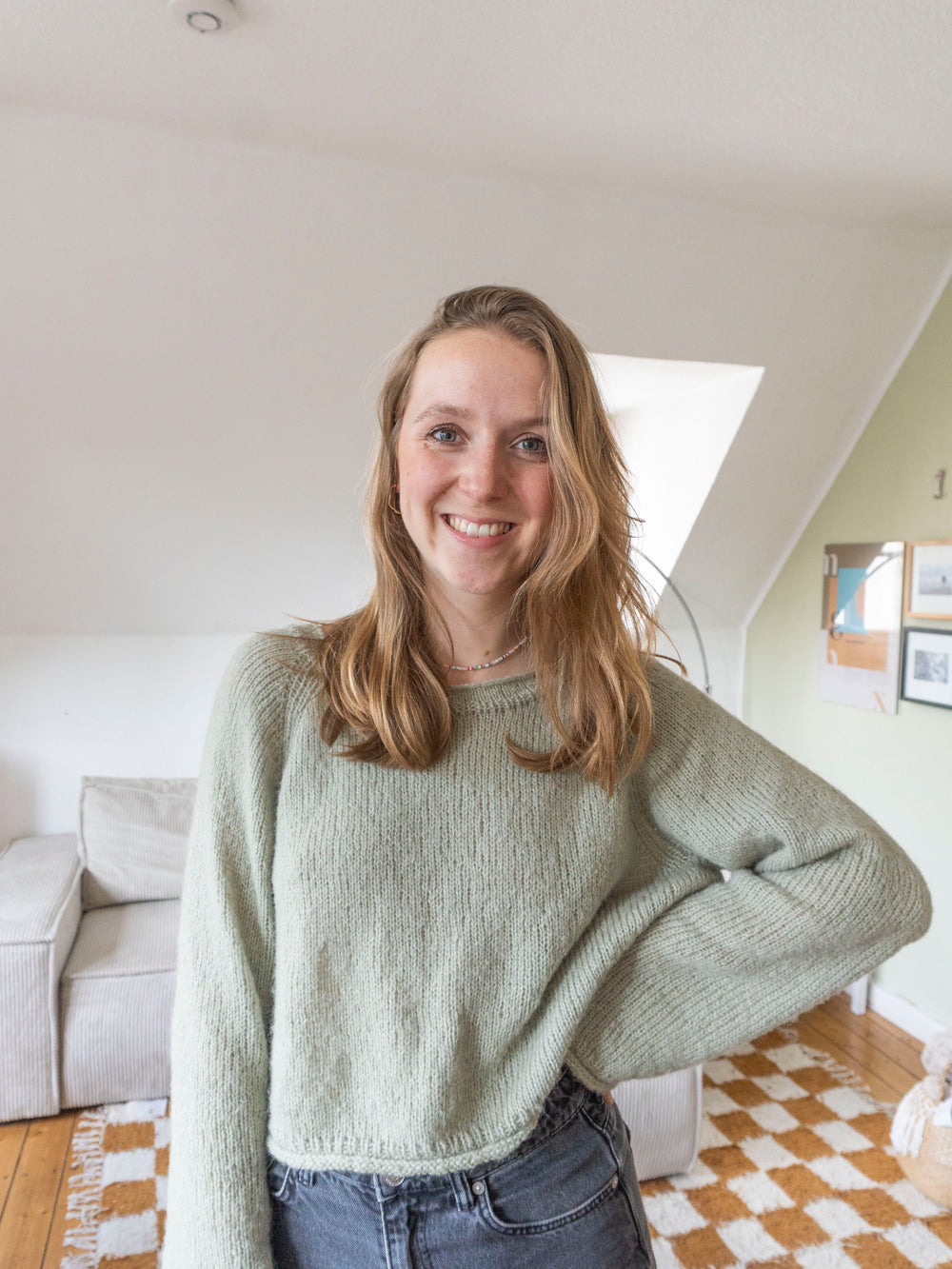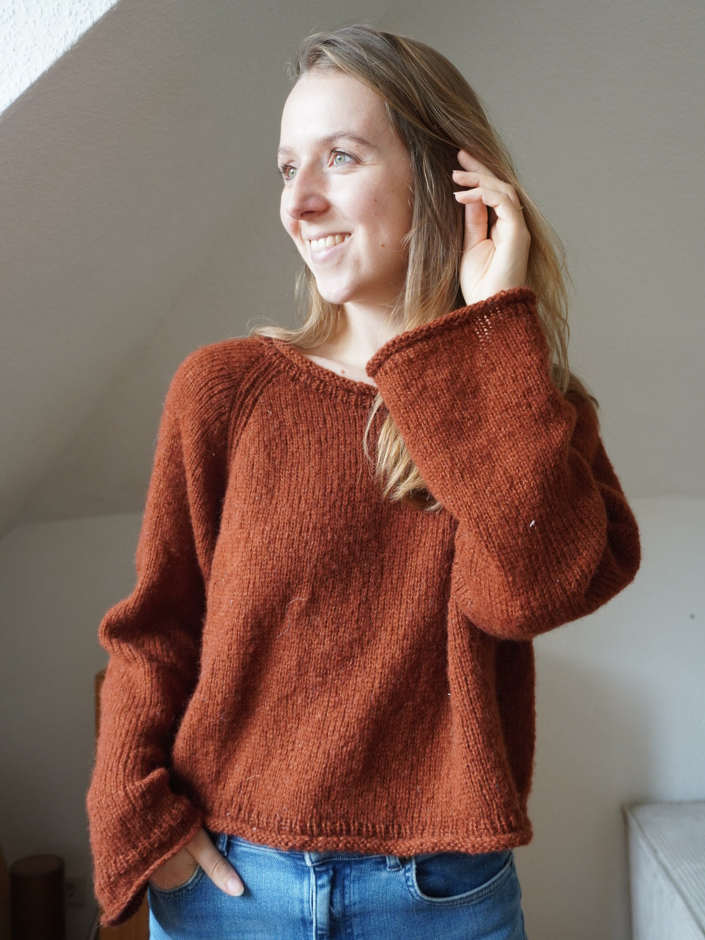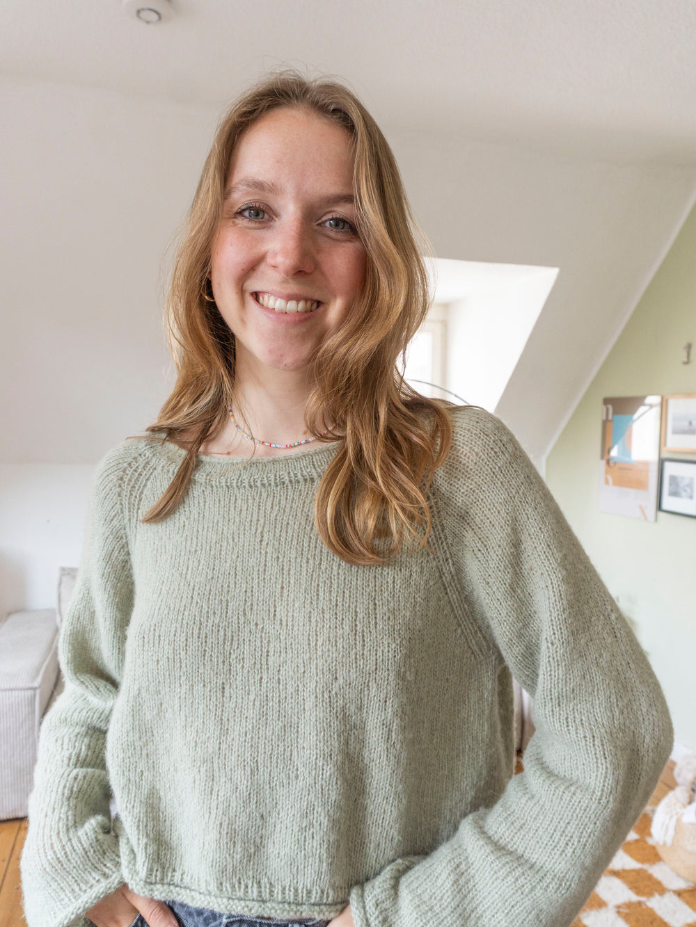 und mit der Raglantechnik die Passe geformt. Mit Hilfe von Wendemaschen