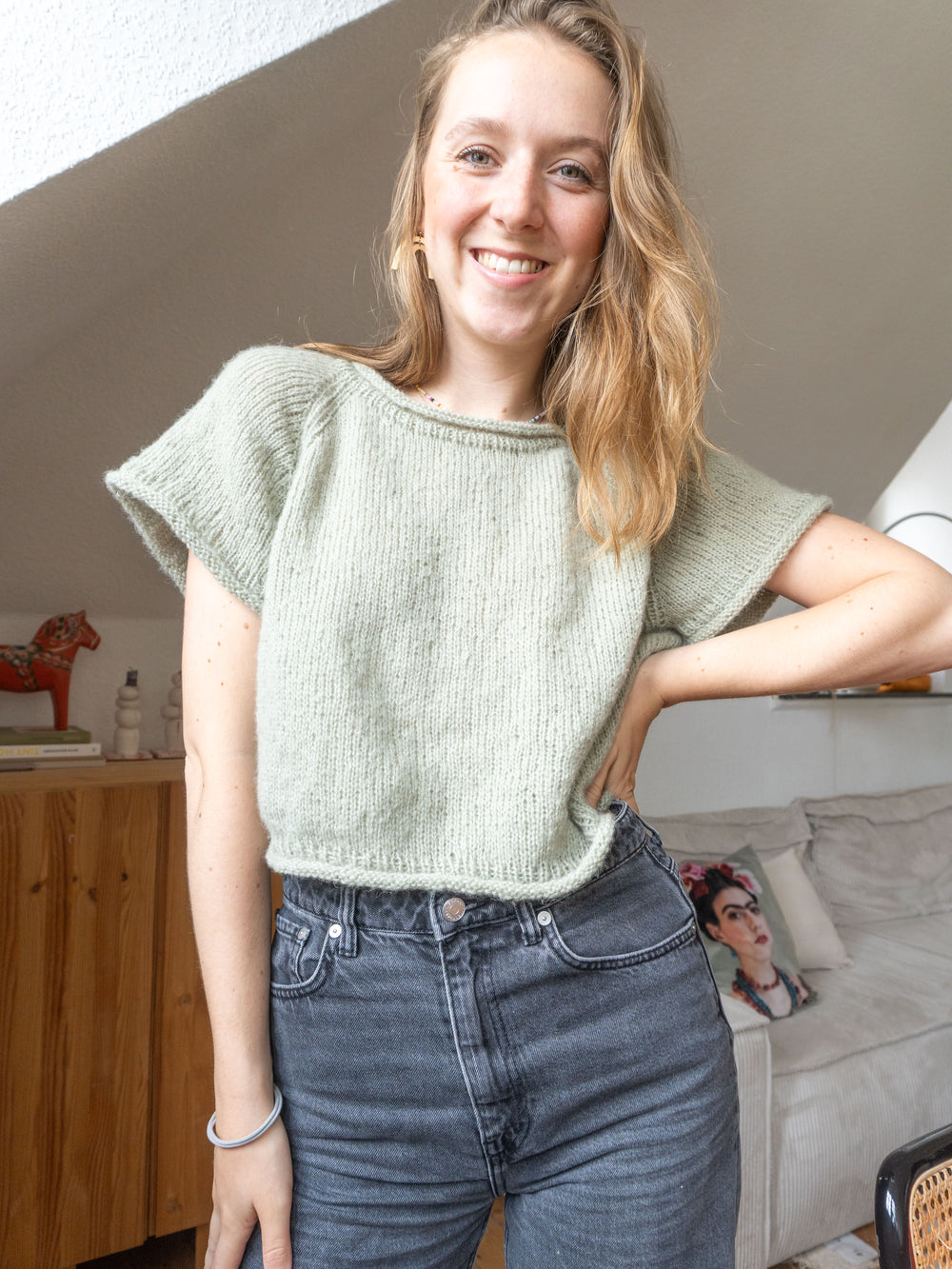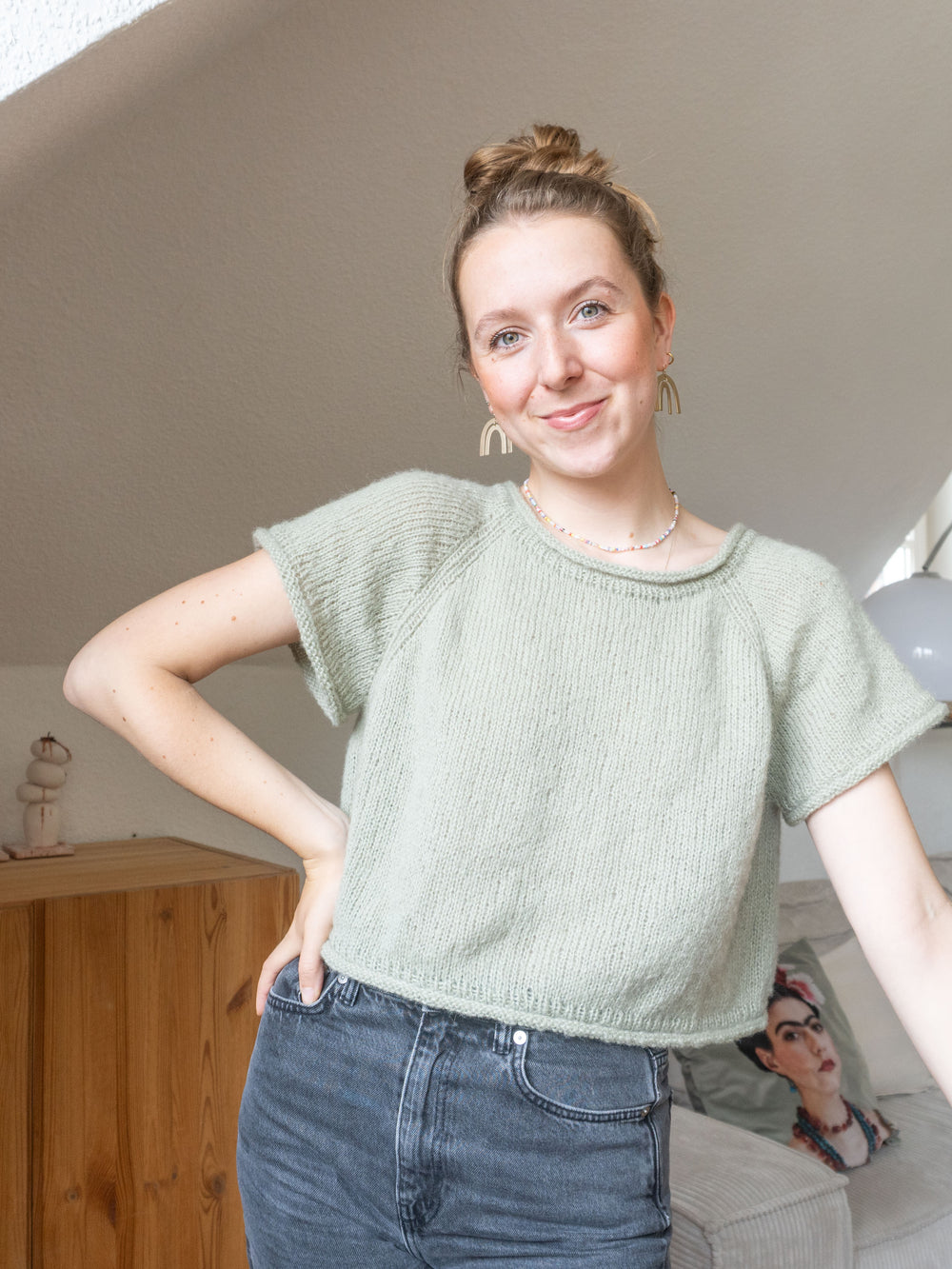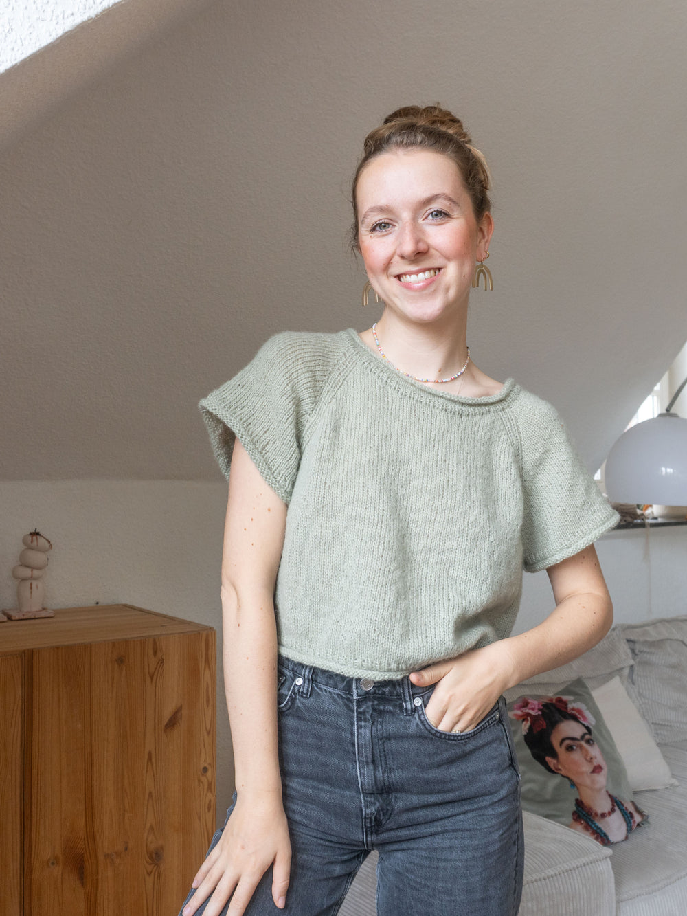 und mit der Raglantechnik die Passe geformt. Mit Hilfe von Wendemaschen