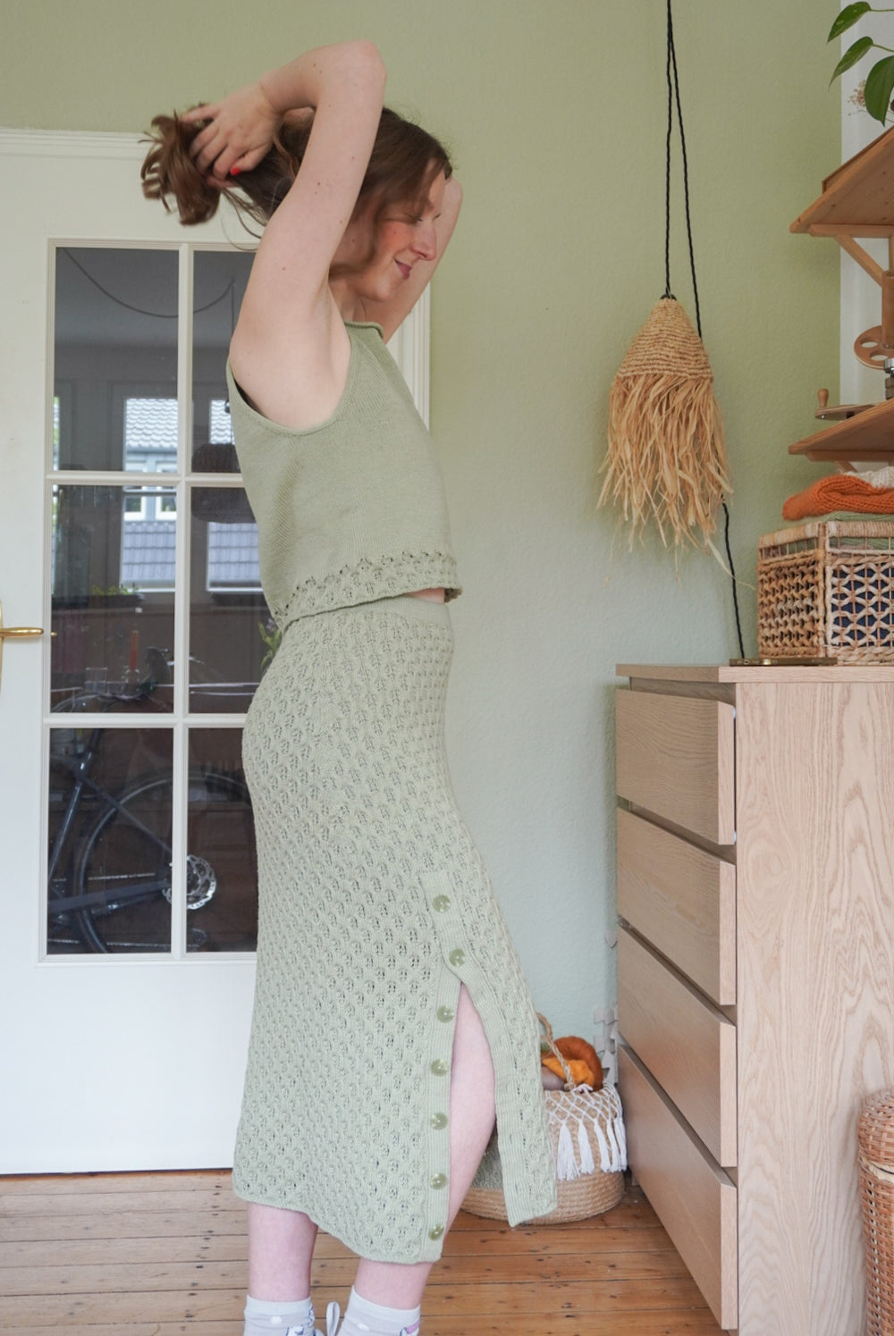 Der Matita Skirt ist sehr passgenau, er hat eine negative ease von ca. -6 cm.