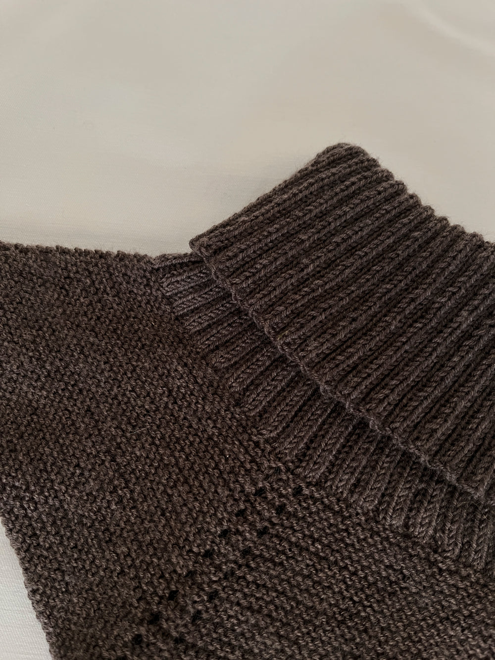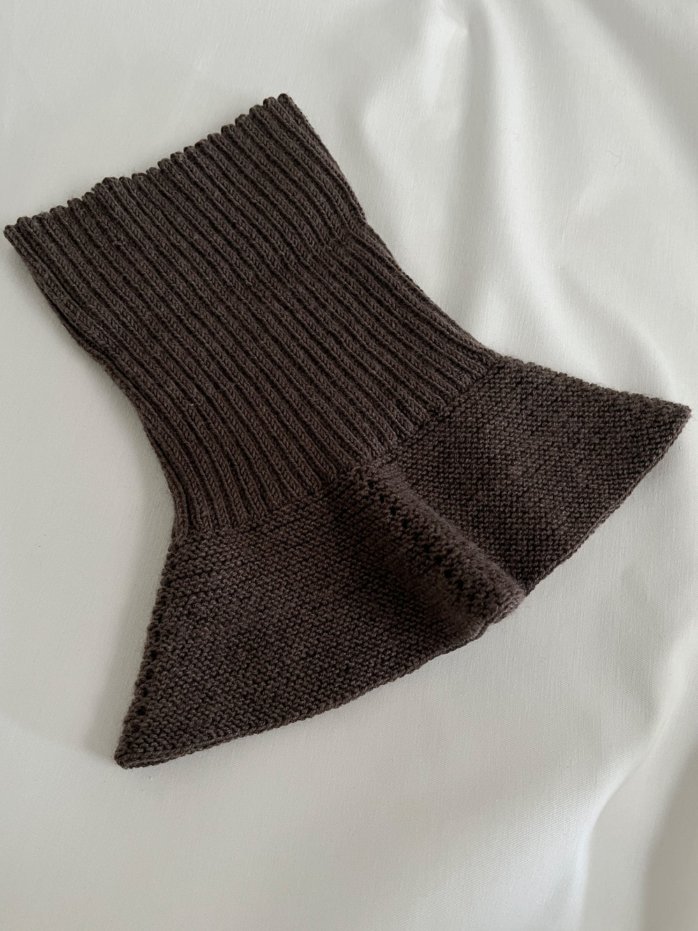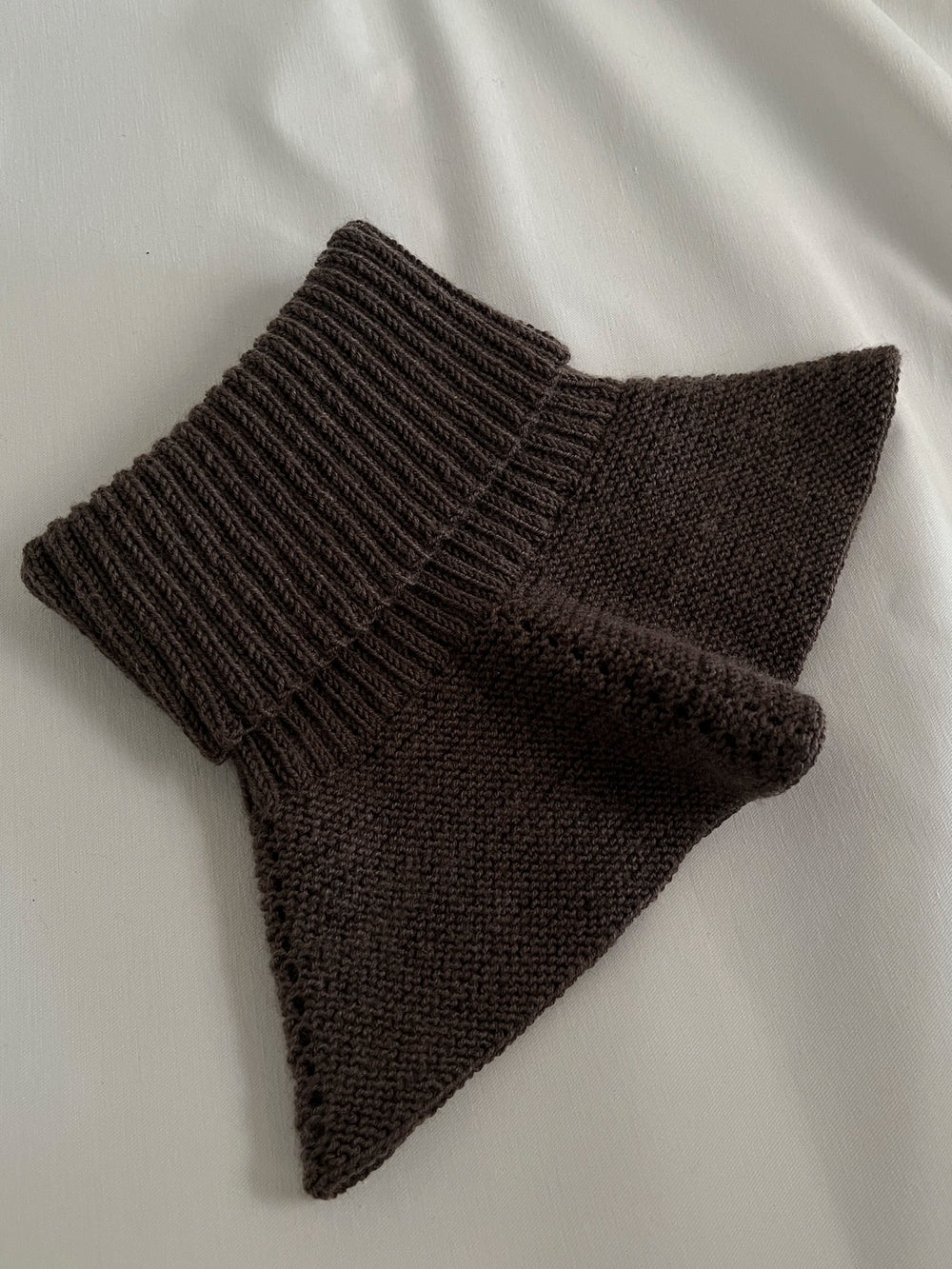Halsedissen er nem at gå til, da den laves med retstrik og en ombukket ribkrave.