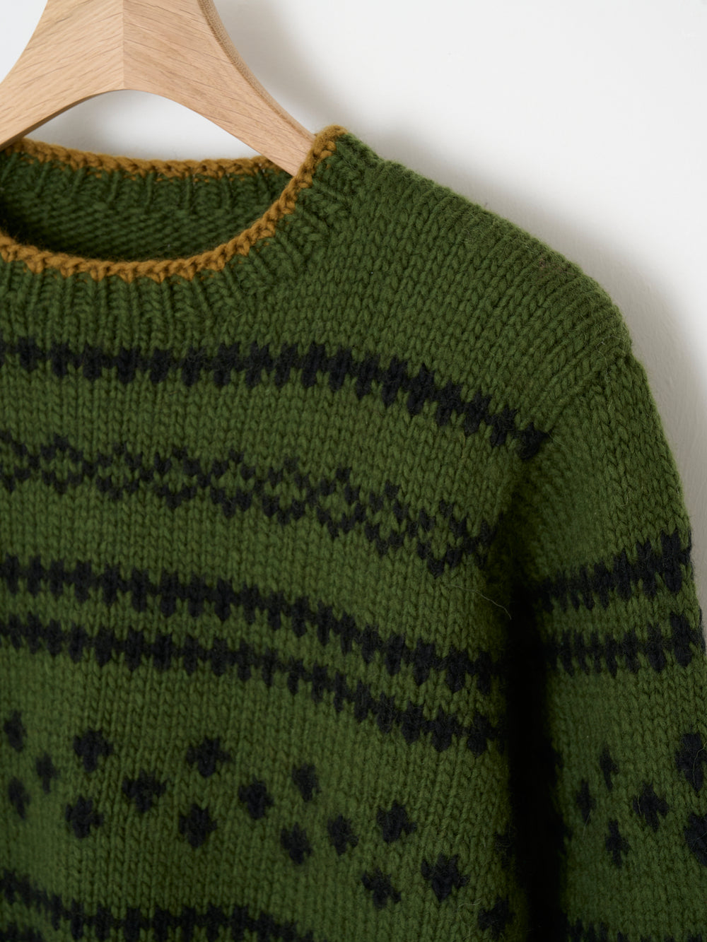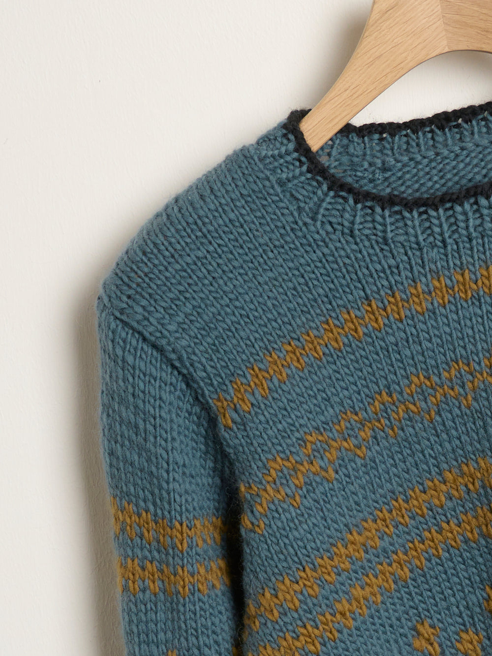 Lucca sweateren er en forholdsvis nem opskrift, og den kan være et godt valg, hvis du skal prøve flerfarvet strik for første gang, da du kun kommer til at strikke mønster med to farver ad gangen og over få masker. Molly Fine har en dejlig kraftig struktur, hvor det er nemt at se de enkelte masker og få godt styr på teknikken. Samtidig kan du også hurtigt rette eventuelle fejl.