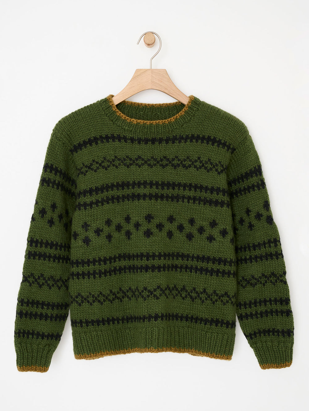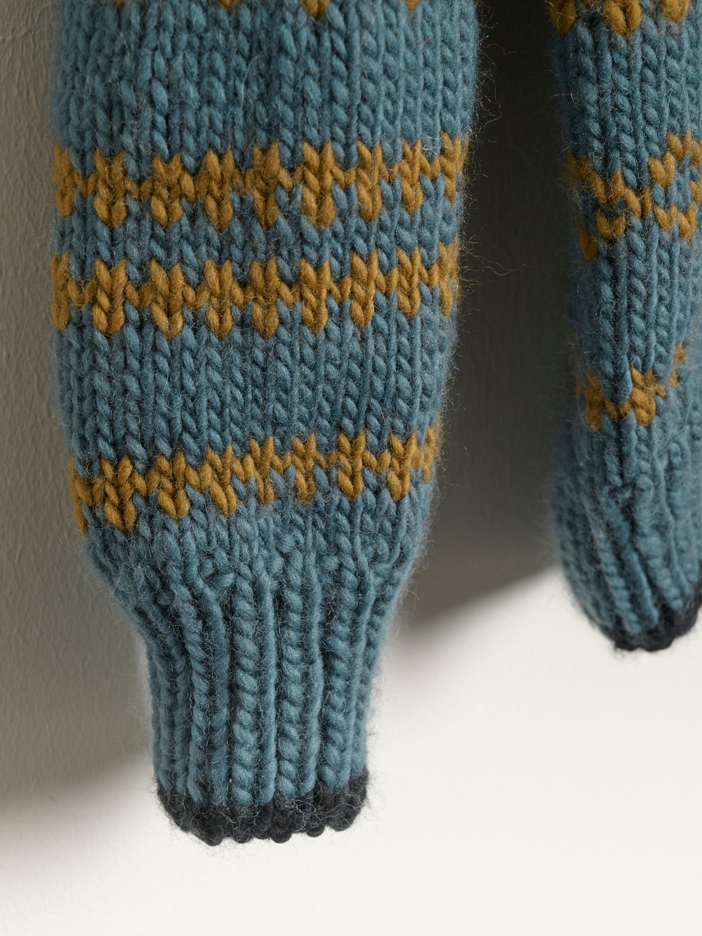 Når du selv strikker sweateren, er der alle muligheder for at være kreativ med farverne. Der skabes en fed effekt, når du vælger en markant kontrastfarve, men resultatet bliver også flot med en mere dæmpet kontrast.