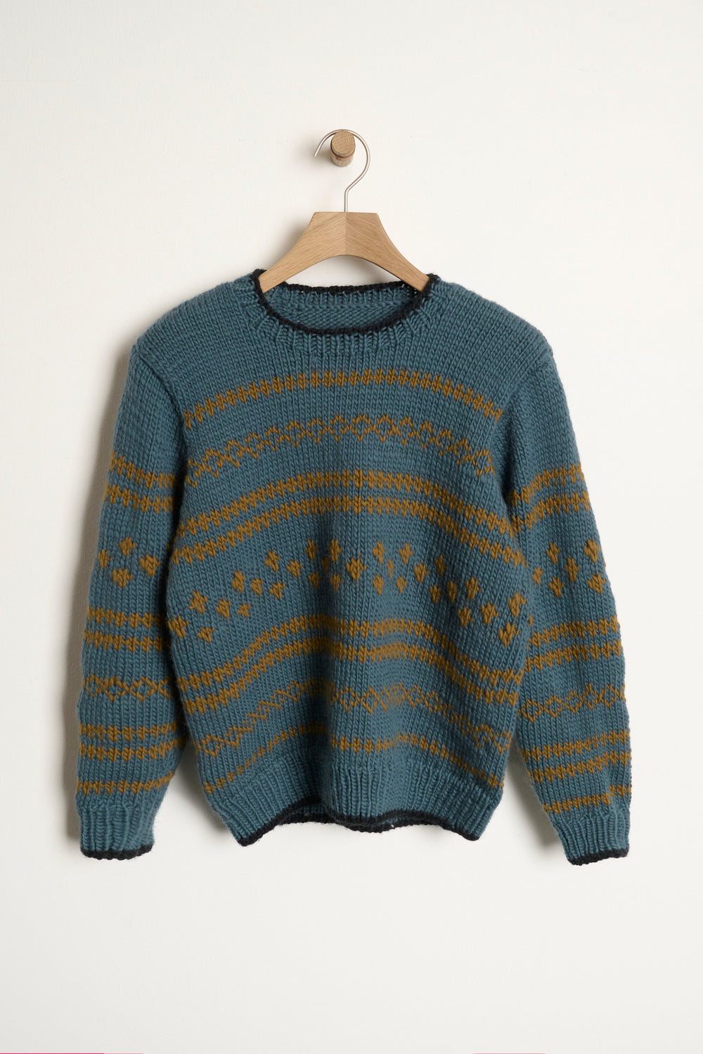 Når du selv strikker sweateren, er der alle muligheder for at være kreativ med farverne. Der skabes en fed effekt, når du vælger en markant kontrastfarve, men resultatet bliver også flot med en mere dæmpet kontrast.