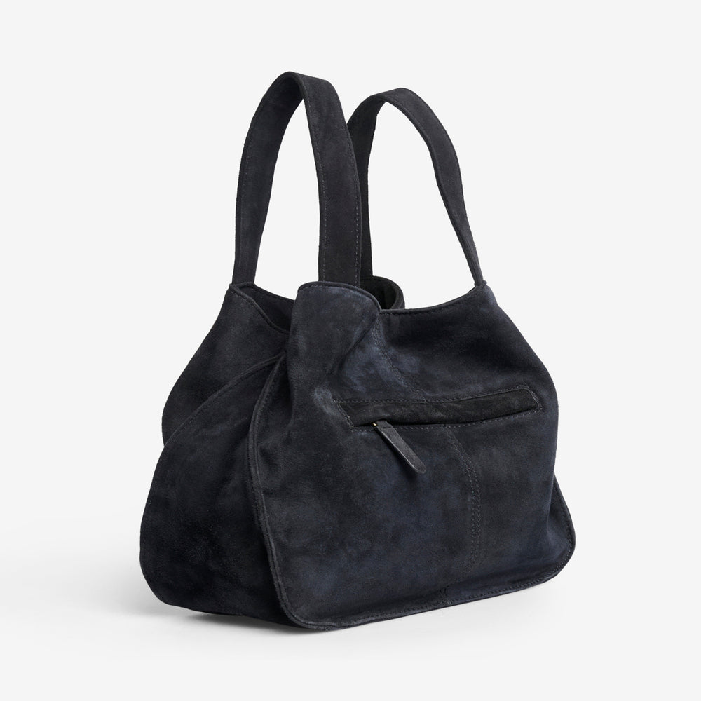 Ella tasken er produceret i blødt og lækkert ruskind, som er kendetegnet ved den karakteristiske opkradsede overflade og materialets smidighed. Tasken føles derfor virkelig blød og lækker at røre ved, og de indfarvede syninger fuldender udtrykket.