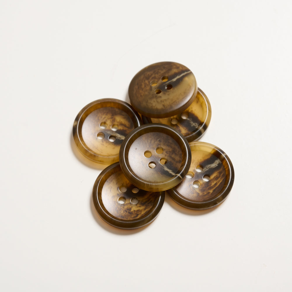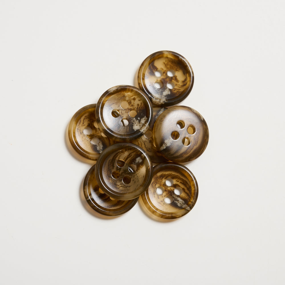 4-huls knapper med trælook i naturlige farver i varierende størrelser fra 15-25mm.