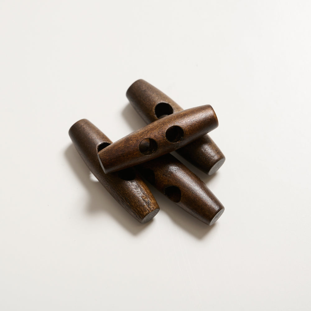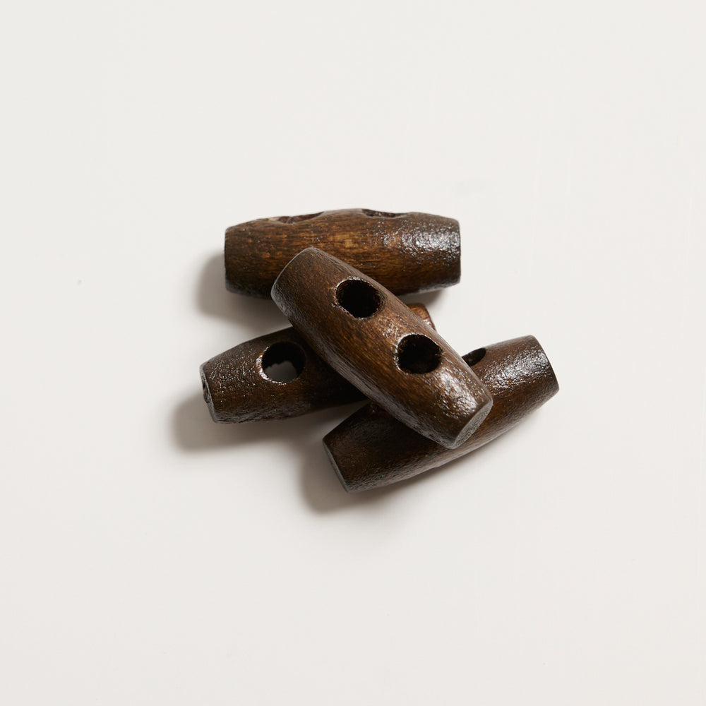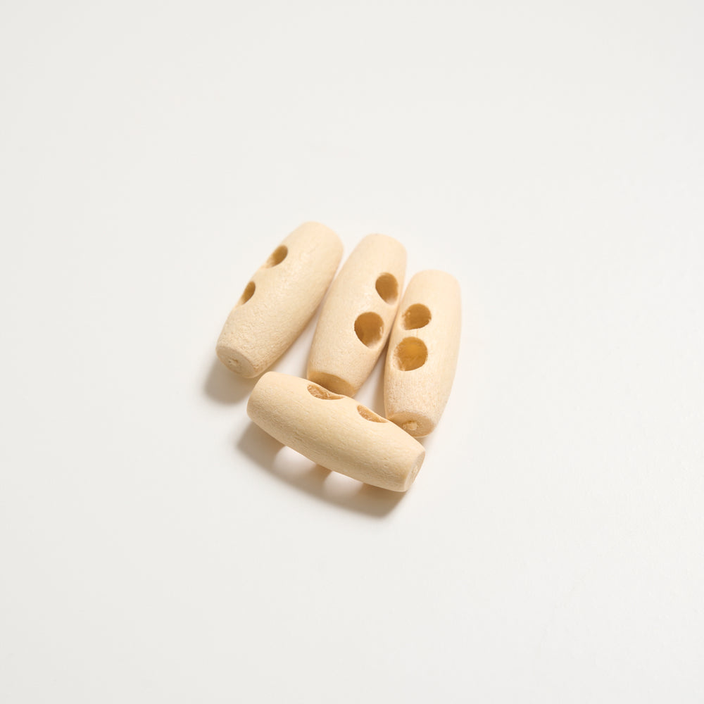 Aflange knapper med to huller der tilfører dine garnprojekter et naturligt og rustikt look. De er fremstillet af træ med en glat overfade. Knapperne fås i tre naturlige nuancer og i fire forskellige størrelser.