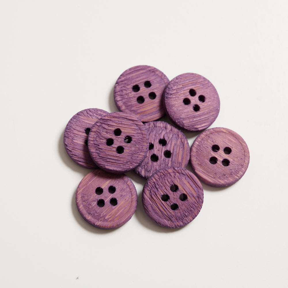 Mayflower Create Knapper med 4 huller og glat overflade. Knapperne er lavet af bambus og fås både i naturlook og med forskellige støvede farver. De måler15mm og der er 8 stk. i en pakke.