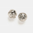 2 runde knapper med en rhinsten, som har en diameter på 10 mm. Knapperne kan bruges i fx en cardigan som en fin og elegant detalje.