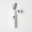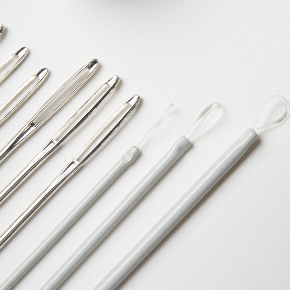Praktisk rør, som indeholder i alt 12 nåle i forskellige størrelser - både stoppenåle og tykkere uldnåle. Paprøret er solidt og holder godt styr på nålene. Nålene måler fra 5-9 cm.