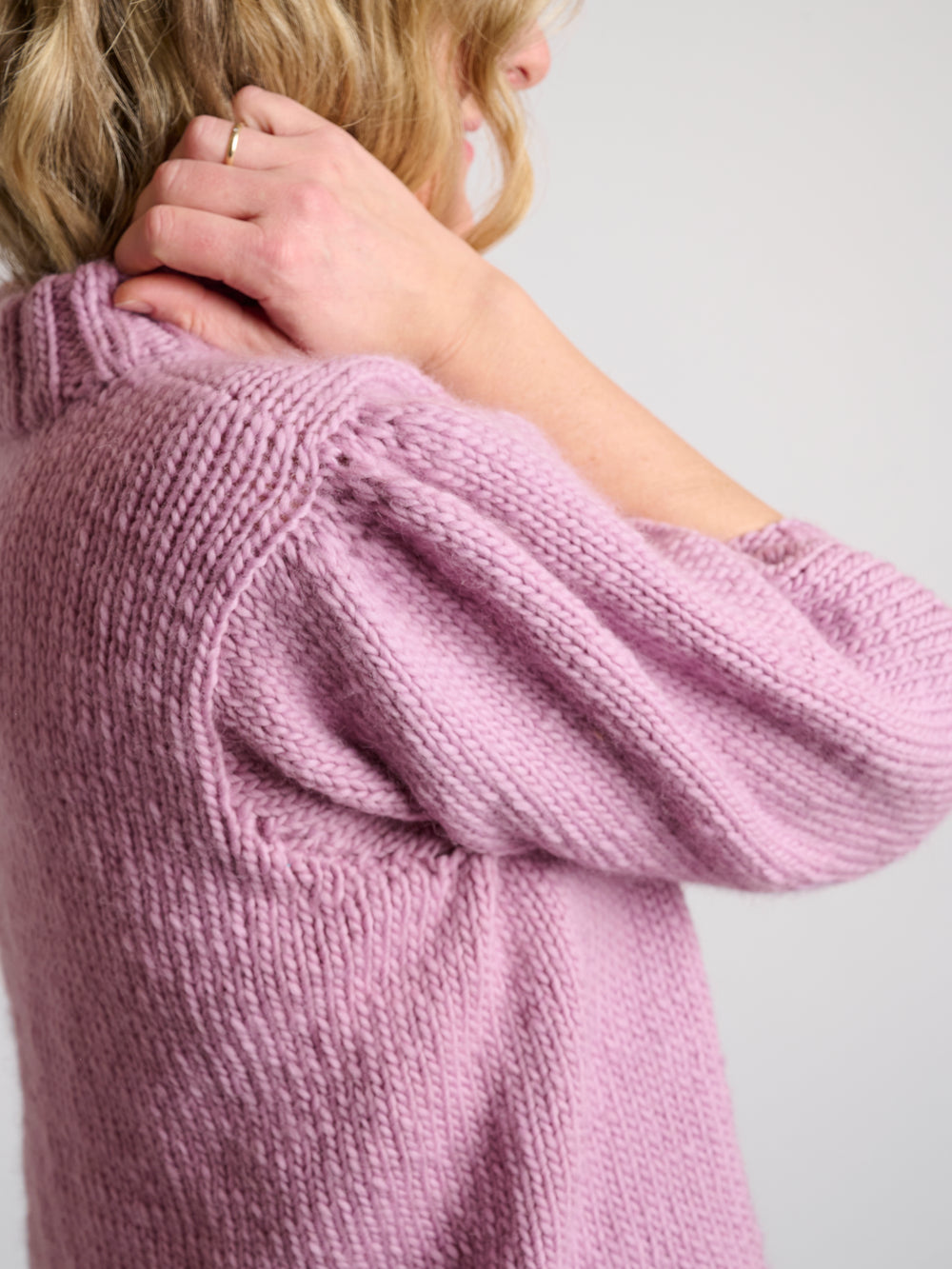 Blusen er strikket i Mayflower Molly Fine, som består af 100 % letspundet uld med en løbelængde 135 meter pr. 100 gram.
