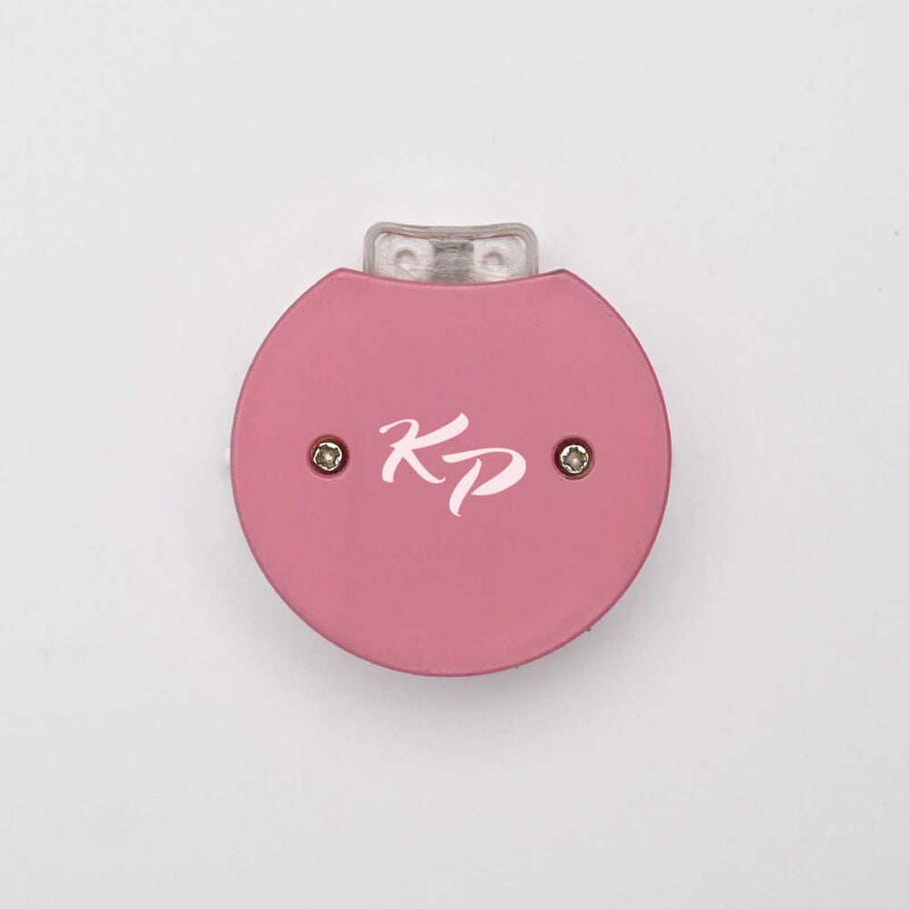 Omgangstæller fra KnitPro, som hjælper dig med at holde styr på, hvor langt du er kommet med dit strikke- eller hæklearbejde. Omgangene, pindene eller rækkerne skifter ved at trykke i toppen. Omgangstælleren kommer i en fin lyserød farve med hvide prikker.