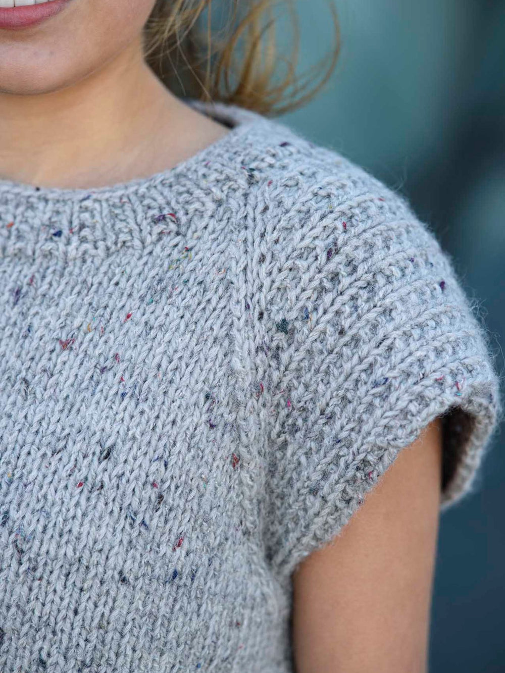 Vesten strikkes nedefra og op. Først med ribmønster og derefter i glatstrik med et smalt ribmønster i begge sider. Ved ærmegabene deles for- og bagstykke, som nu færdiggøres hver for sig med ribmønster over skuldrene. Skuldrene sys til sidst sammen, og der strikkes masker op i halsen til en ribstrikket krave.