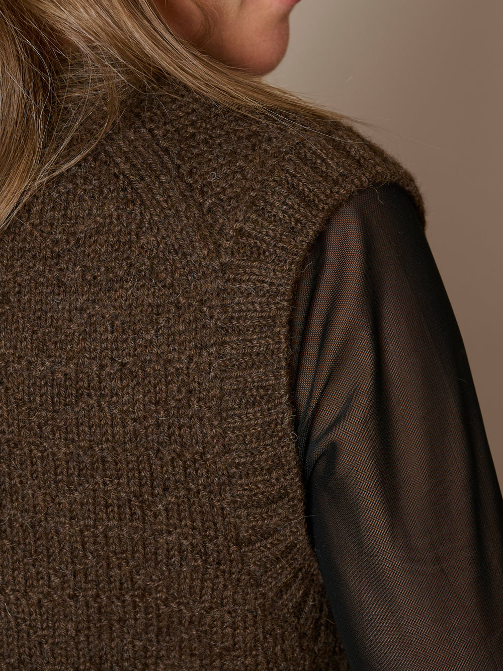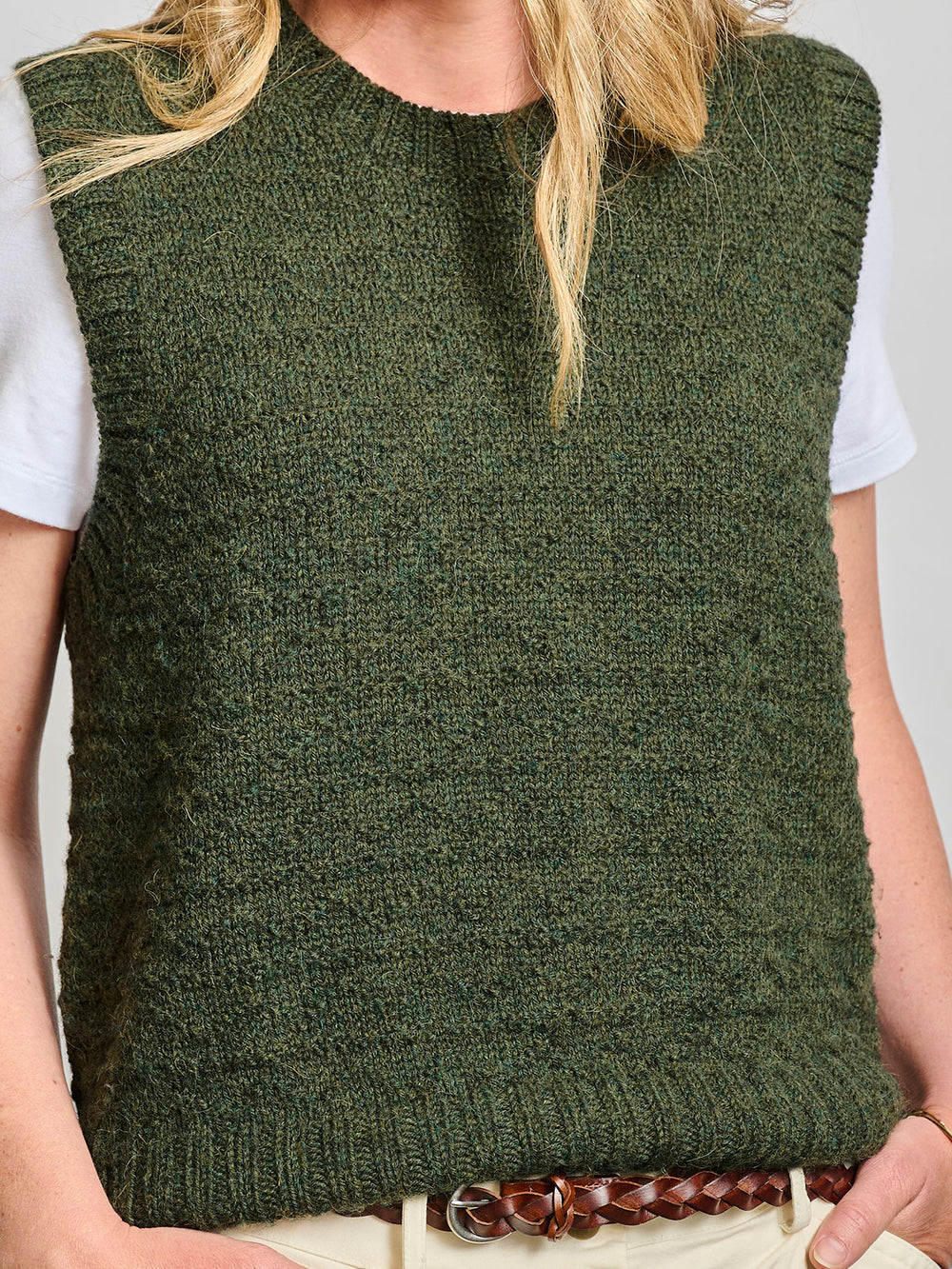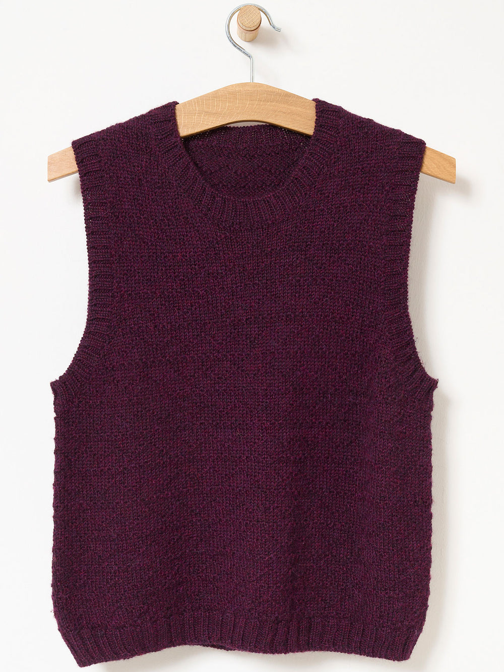 Sille slipoveren strikkes topdown i strukturmønster, som går igen både for og bag. Kanterne strikkes i rib.
