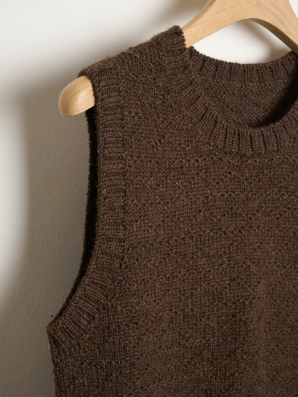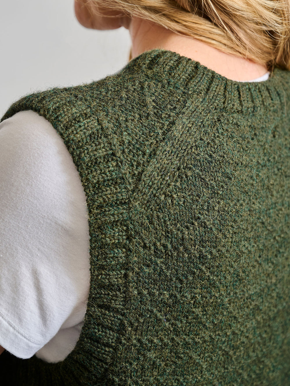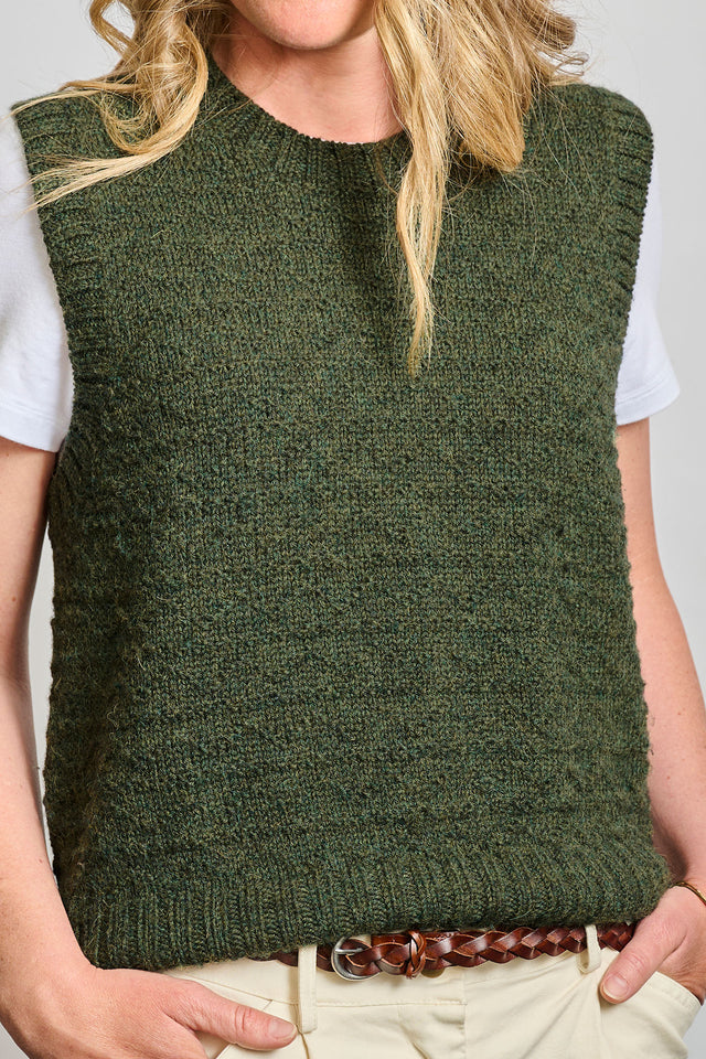 Sille slipoveren strikkes topdown i strukturmønster, som går igen både for og bag. Kanterne strikkes i rib.