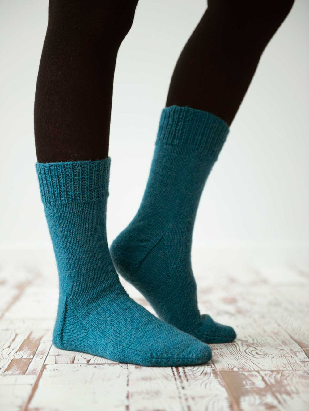 Helt klassiske og enkle men ikke desto mindre skønne strømper med kilehæl i glatstrik og ribkant foroven. Med glatstrik går det hurtigt med at få strikket skaft og sål, og opskriften hjælper dig godt igennem både hæl og tå. Tilbage står du med et par skønne og behagelige strømper.