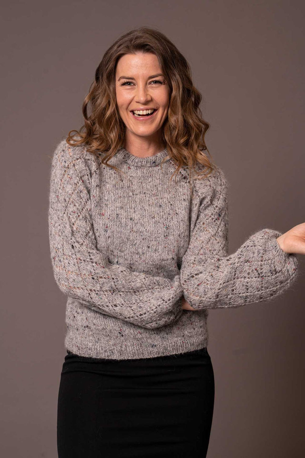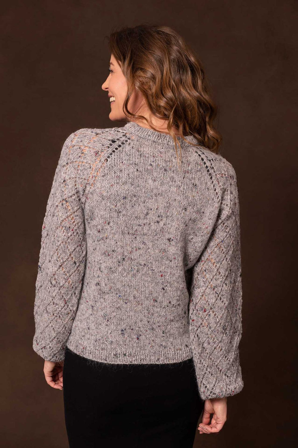 Skagen trøjen er strikket oppefra og ned med raglanudtagninger. Der er strikket vendemasker i nakken for at forme trøjen og give en god pasform. Trøjens helt perfekte detalje er dog de smukke ærmer, der strikkes med et hulmønster i harlekin-tern.