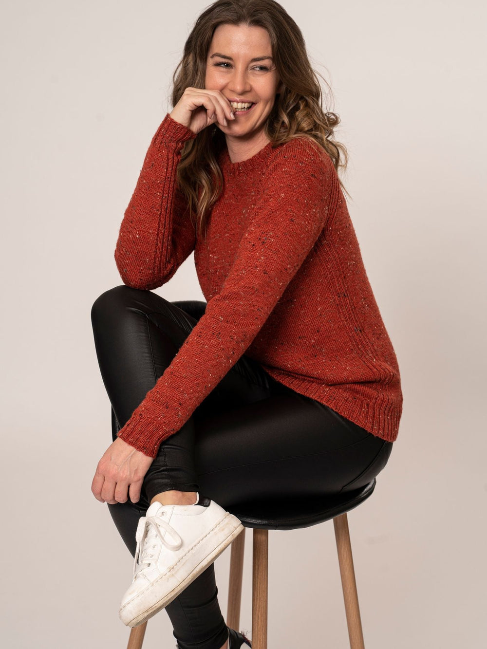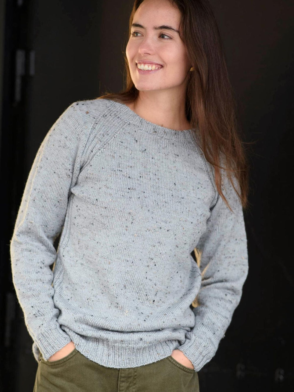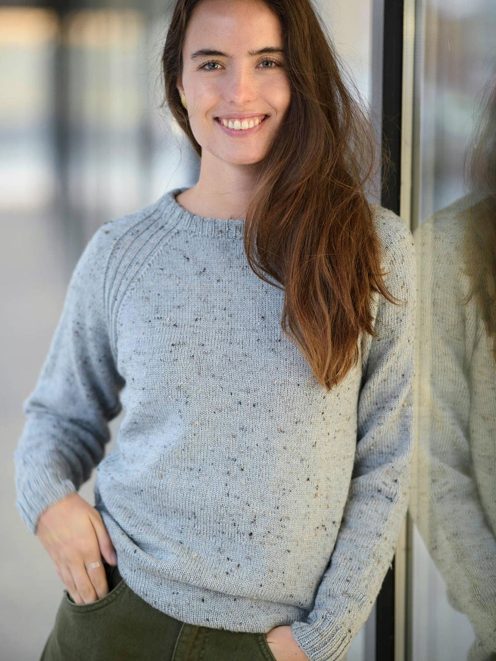 Med sit enkle design kan denne sweater passe ind i enhver garderobe. Den strikkes nedefra og op med raglanærmer, hvilket gør den til et nemt strikkeprojekt med minimal montering.
