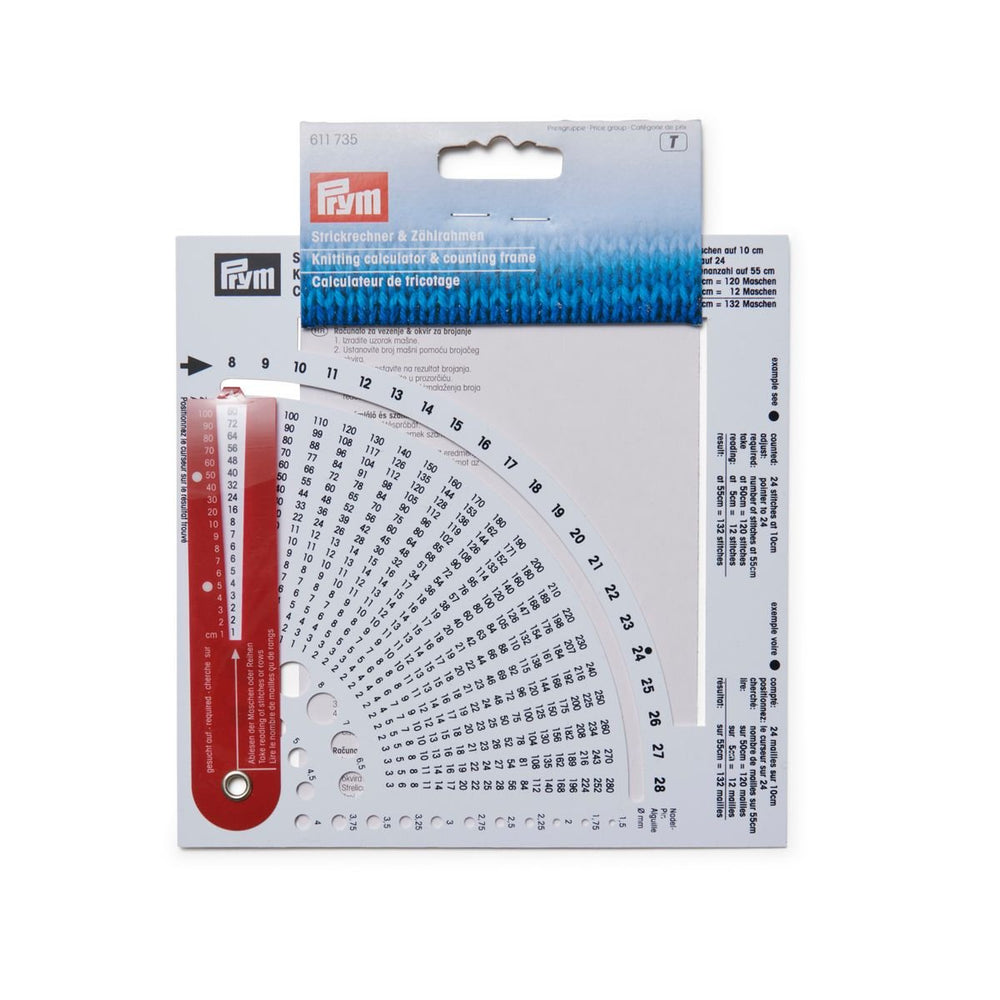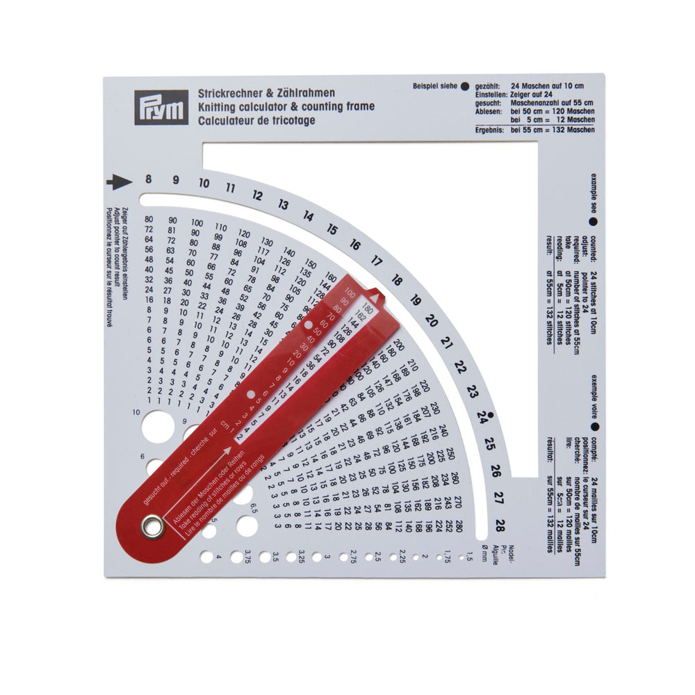 Strikkekalkulator, som har mange funktioner. Med denne kan du nemlig både måle strikkepindestørrelse, strikkefasthed og beregne dit maskeantal.