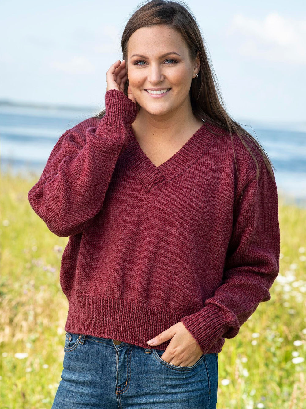 Oversize sweatere er efterspurgte hos mange, og dette look kan du få med denne sweater. Sweateren er strikket i Mayflower Easy Care Classic, som er 100 % ren ny uld. Derudover har garnkvaliteten også en løbelængde 106 meter pr. 50 gram, så der er tale om mellemtykt uldgarn. Det giver en dejlig varm sweater, som stadig kan bruges det meste af året.