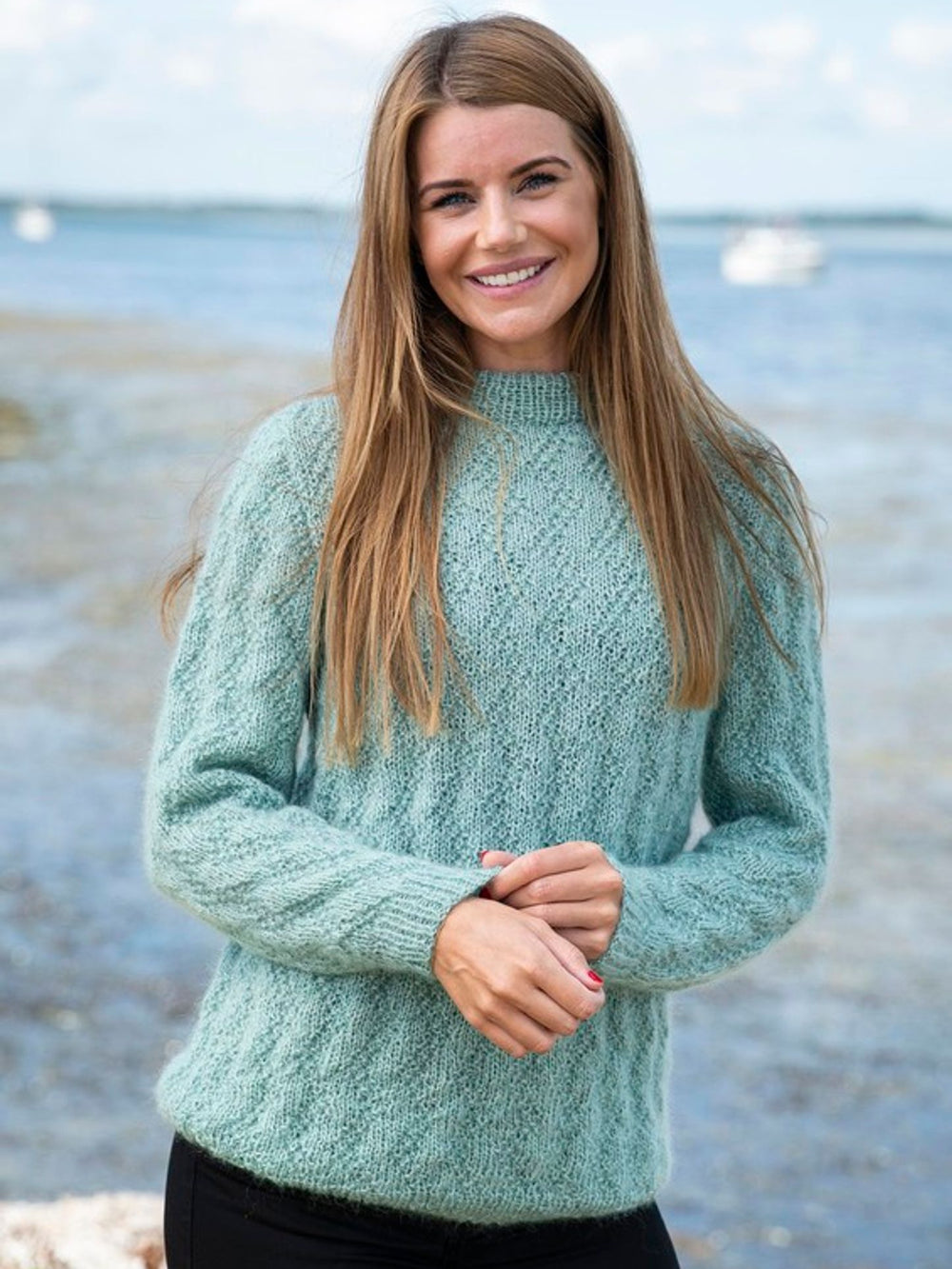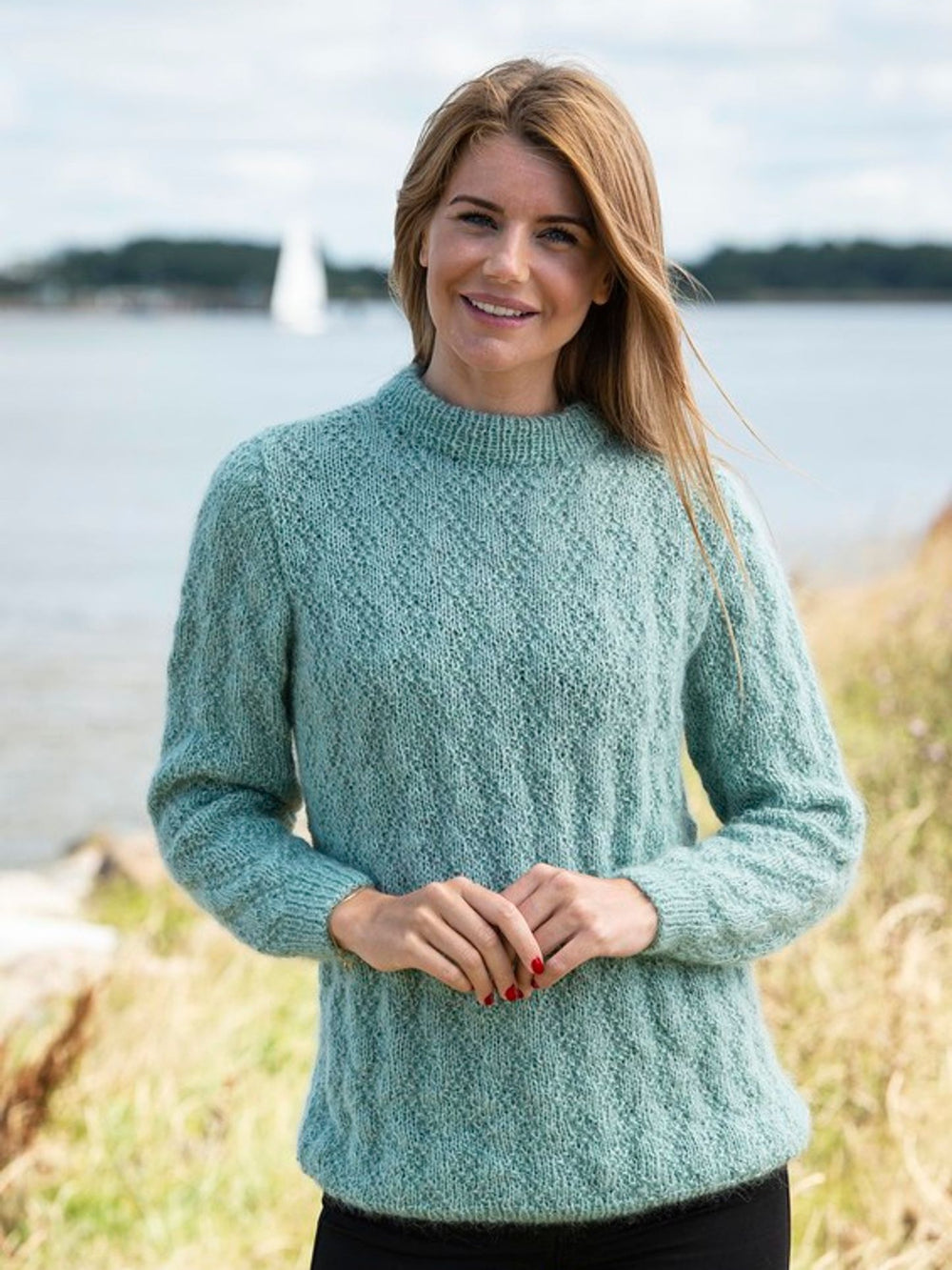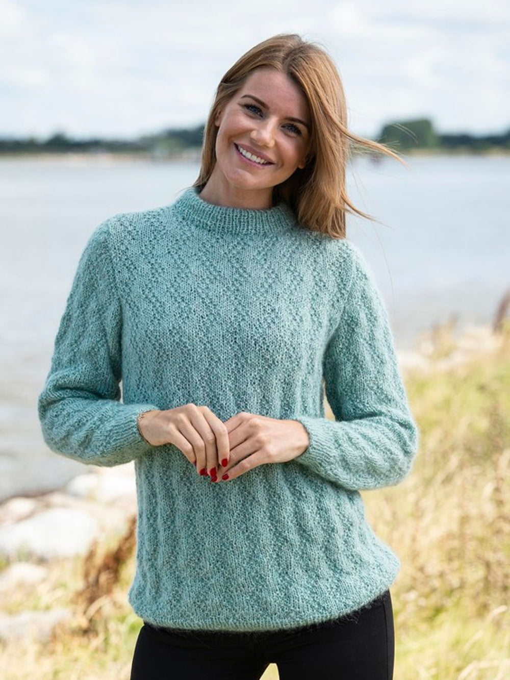 Kombinationen af Easy Care med Super Kid Silk som følgetråd giver en ekstra blød og lækker sweater, som er dejlig lun. Sweateren er smukt afsluttet i bullen med en fin lille ribkant, og den samme afslutning bruges også ved ærmekanterne.