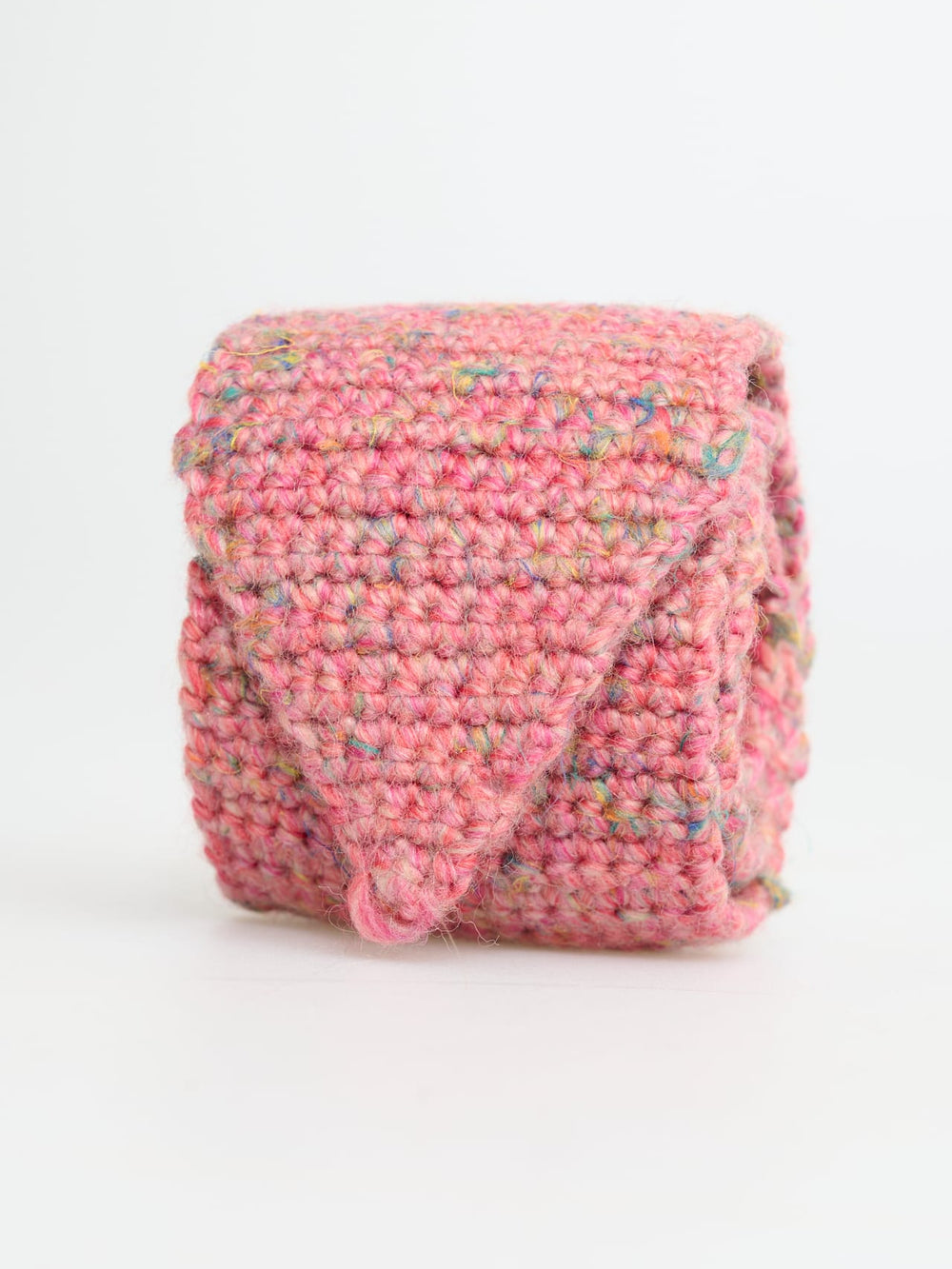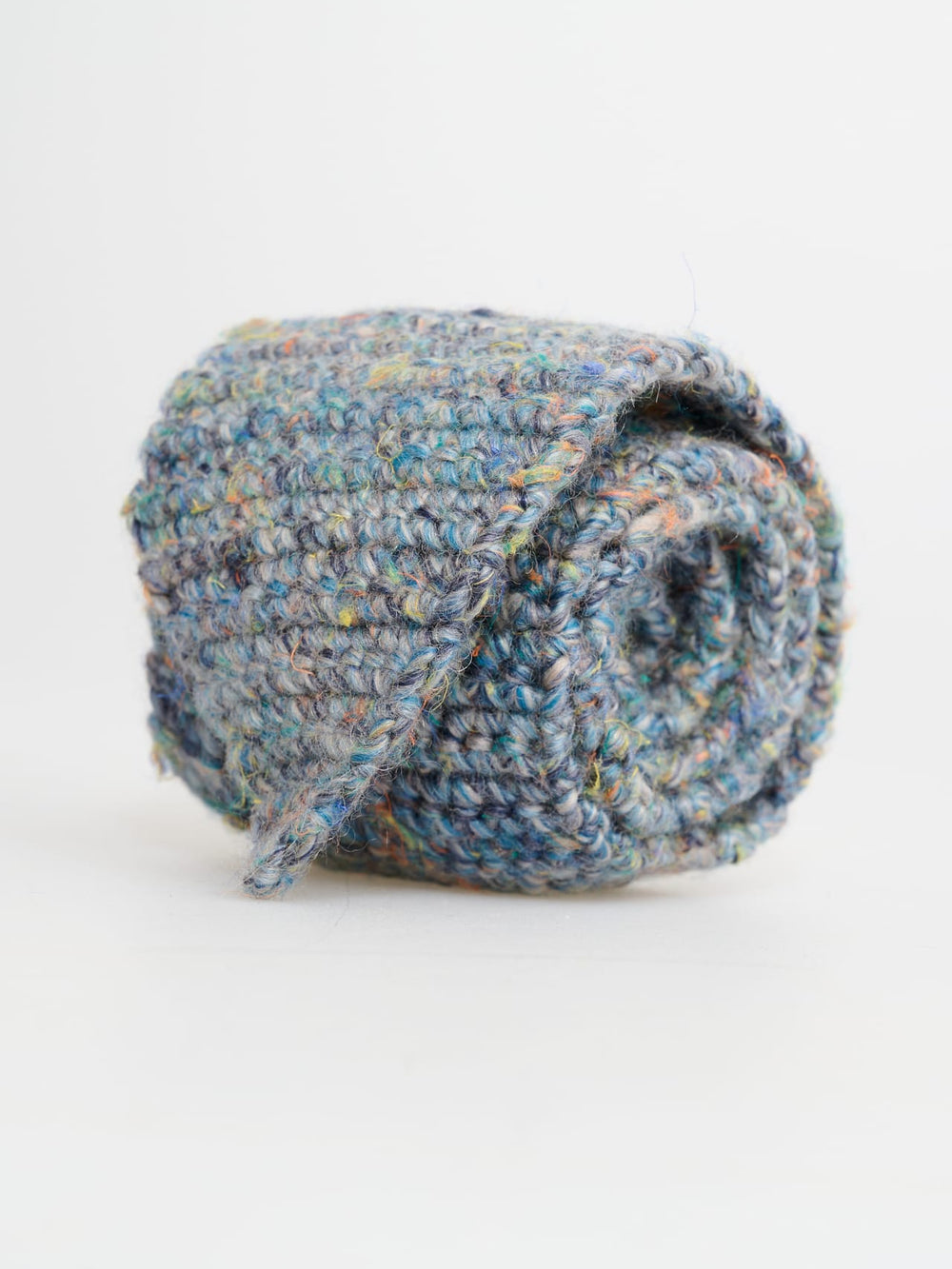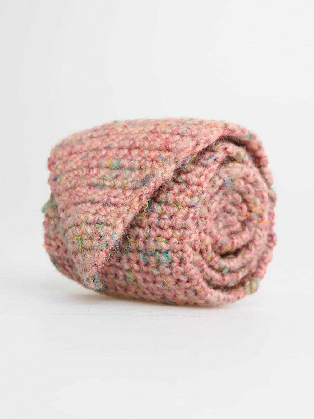 Slipset har et smukt farvespil, da det hækles i Premium Georgina. Georgina er et eksklusivt, blødt garn, som er spundet på den fineste merinould, lyocell og hør.