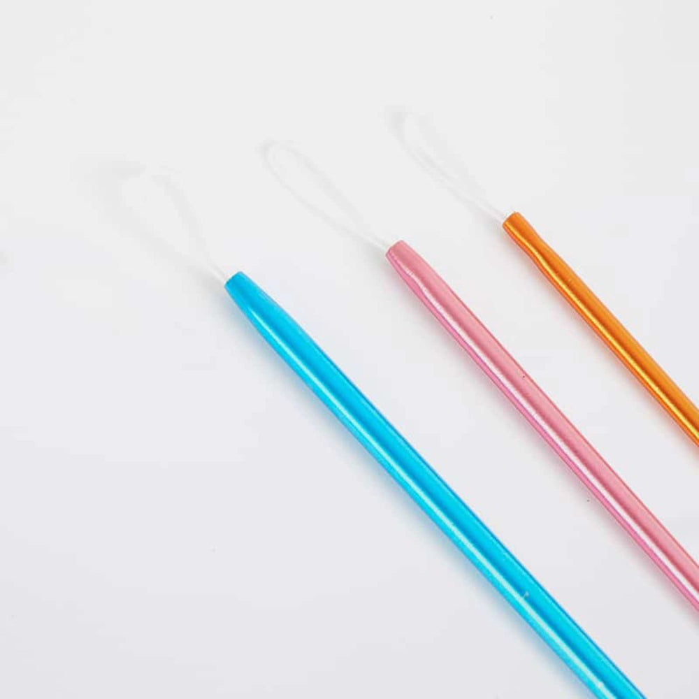 Uldnåle i aluminium fra KnitPro, som er praktiske, når du skal hæfte garnender. Nålene kan bruges til alle typer garn, og med nåle i 3 forskellige størrelser er det nemt at finde en egnet nål. Nålene har en afrundet ende og er derfor ikke spidse. I den anden ende er et kabeløje, hvilket gør det nemt at trække garnenden på nålen.