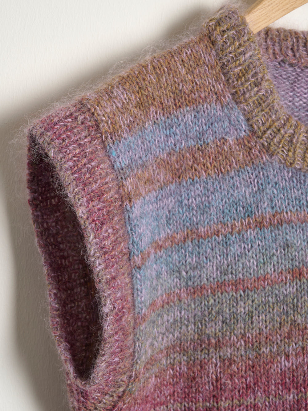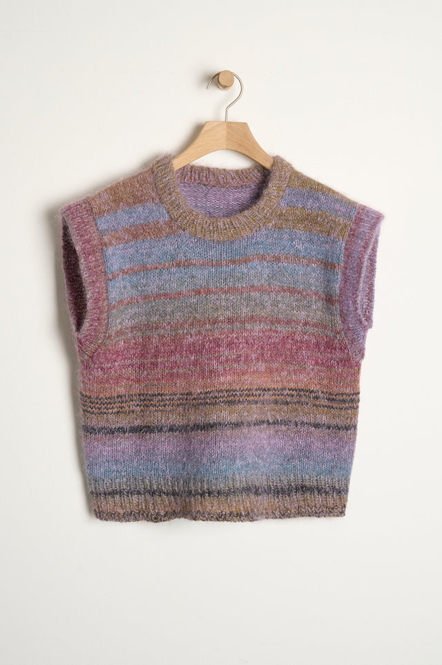 Denne version af Weekend slipover er strikket med 2 tråde: én tråd Mayflower Taormina + én tråd Mayflower Super Kid Silk. Kombinationen giver en virkelig blød og let slipover, som føles dejlig og tilpas lun over fx en skjorte, bluse eller kjole. Som alternativ til mohairgarnet Super Kid Silk kan du også bruge alpakablandingen Mayflower Elba eller Mayflower Premium Cassandra, som er spundet på bl.a. silke og alpaka.