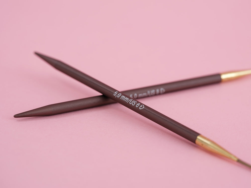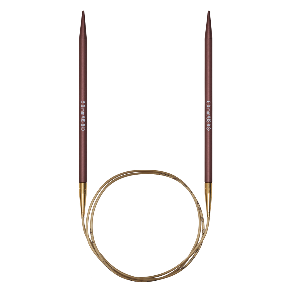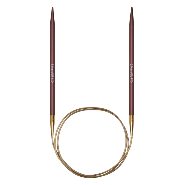 Feste Rundstricknadeln aus robustem Aluminium aus der Mystic Lace-Serie von ADDI. Erhältlich in den Größen 2,00–8,00 mm mit einer Seillänge von 60 oder 80 cm.