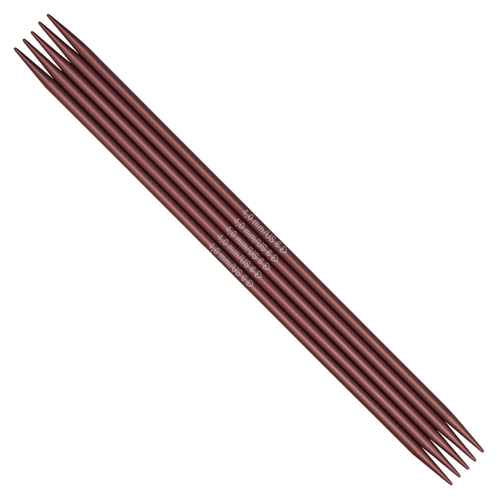 Klassiske strømpepinde i aluminium i serien serien Mystic Lace fra ADDI. Strømpepindene fås fra 2.00-4.00 mm i enten 15 eller 20 cm.