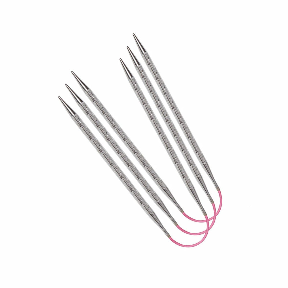 Die ADDI Crasy Trio Flexible Strumpfnadeln in den Größen 2,00mm bis 5,0mm und einer Länge von 30 cm bieten eine hochwertige Strickqualität aus Messing, das mit weißer Bronze beschichtet ist. Diese Nadeln zeichnen sich durch ihre spiralförmige Struktur aus, die dem Garn ein besonders sanftes Gleiten ermöglicht, ohne Widerstand. Sie sind ideal für präzises Stricken und verhindern, dass die Garnfasern sich während des Strickens verdrehen. Das flexible, pinkfarbene Kabel sorgt für eine angenehme Handhabung und ist mit der Nadelgröße und Länge gut gekennzeichnet. Diese Nadeln sind in einer Vielzahl von Größen erhältlich und bieten damit eine perfekte Wahl für unterschiedlichste Strickprojekte.