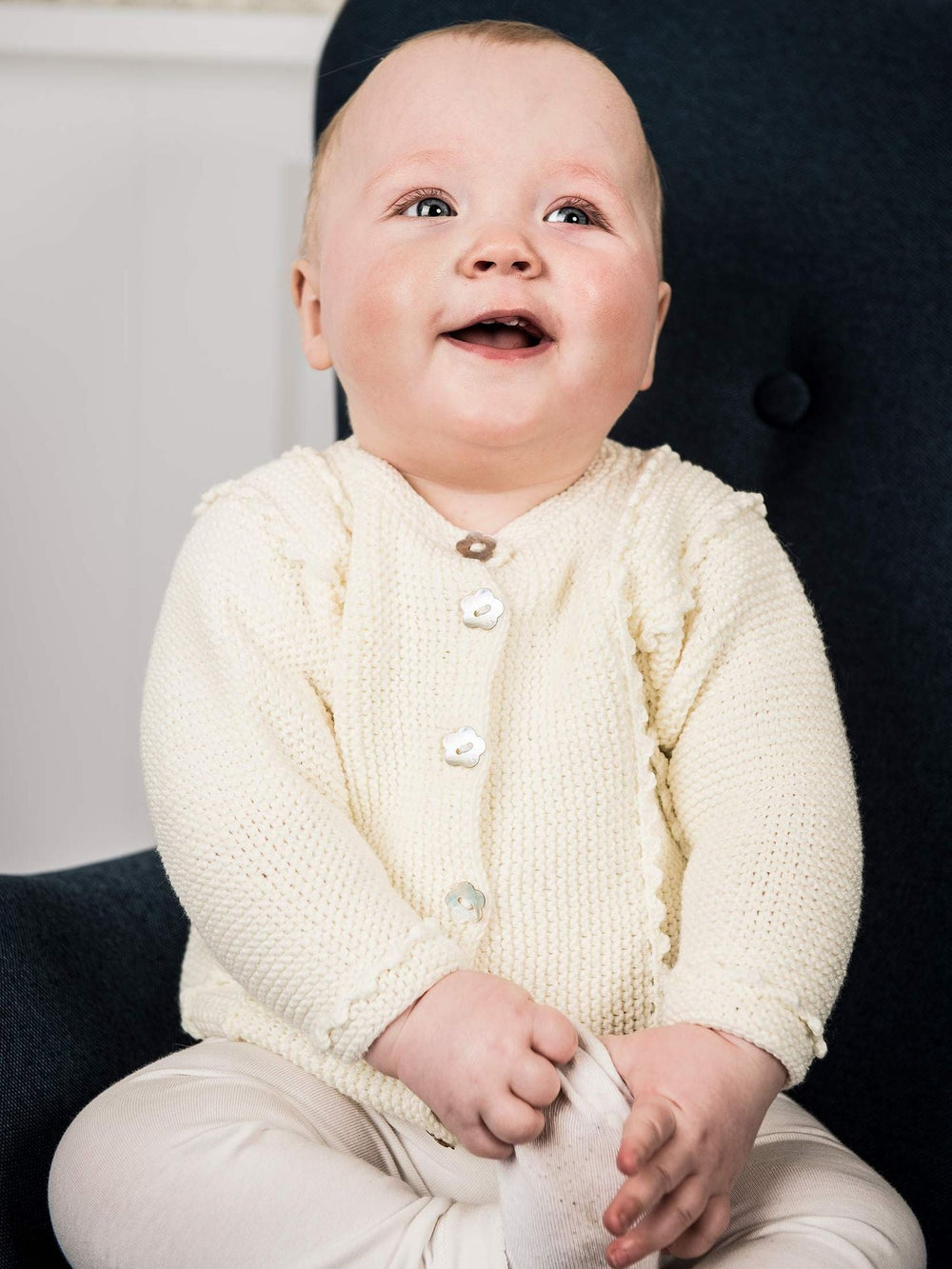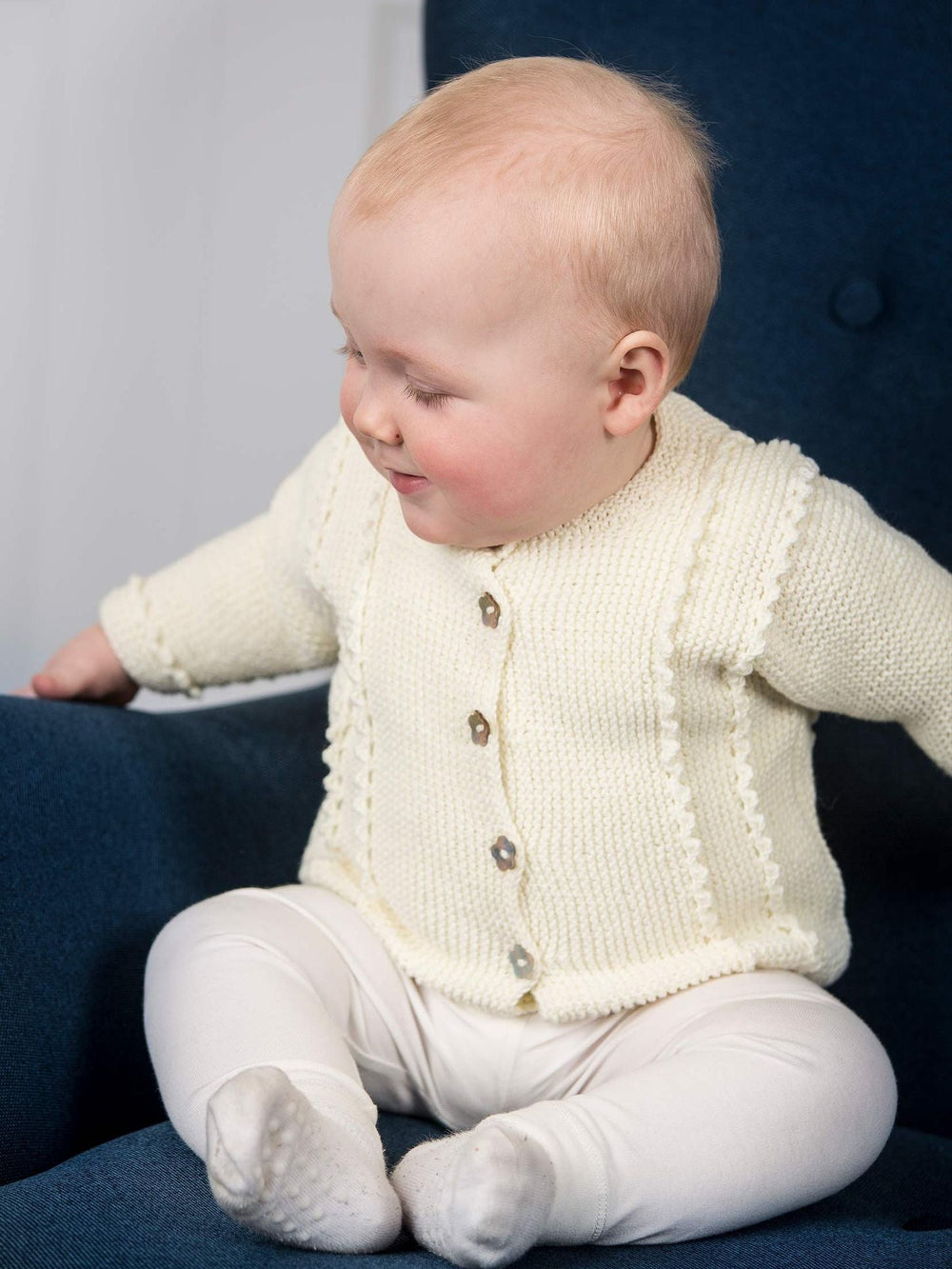 Die süßeste Baby -Strickjacke mit Rüschen.