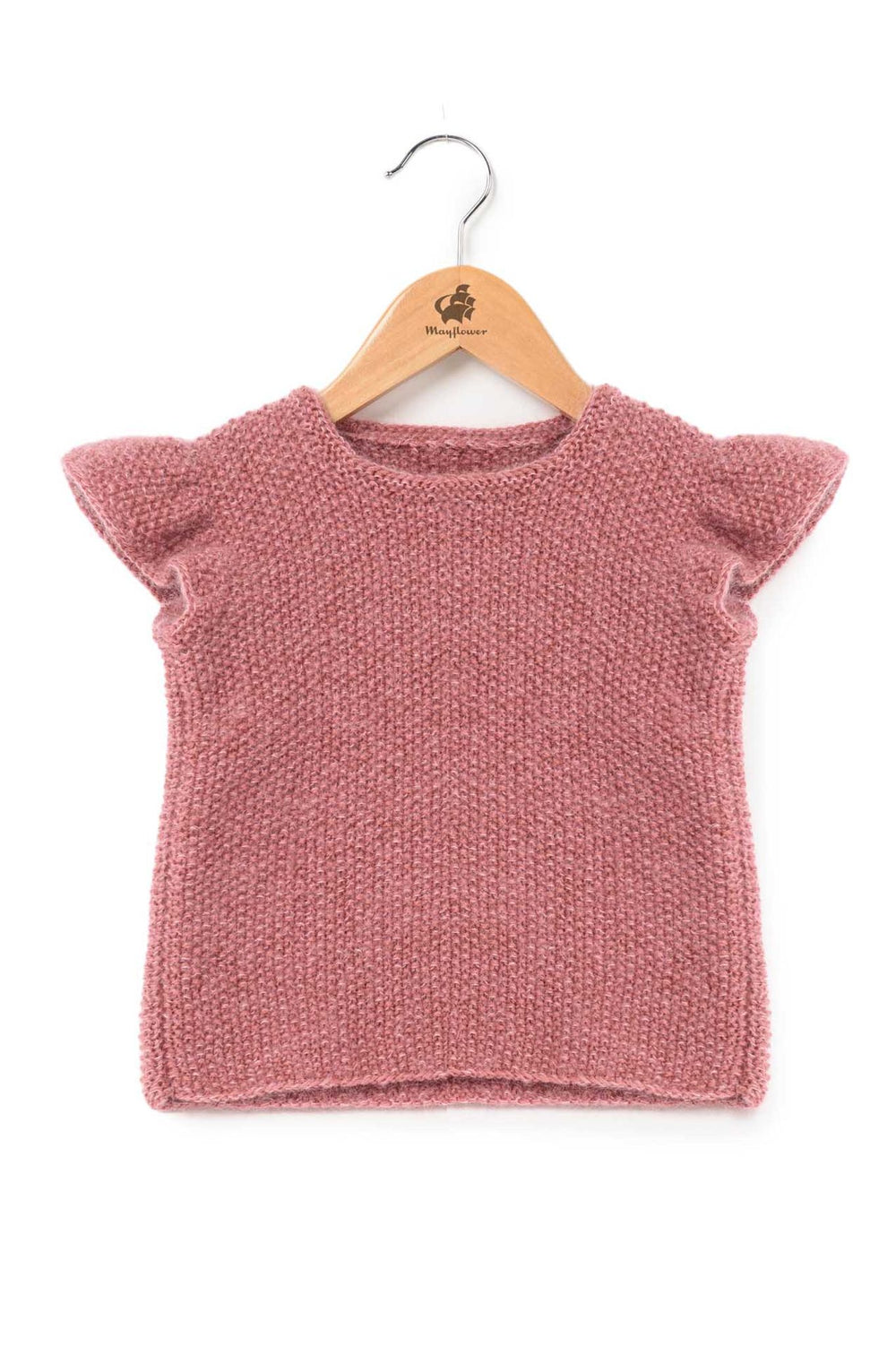 Die süßen Rüschenärmel verleihen der Weste viel Persönlichkeit, während das einfache Strukturmuster, das durch Perlmuster gestrickt wird, eine schöne Ergänzung ist. Diese feinen Details werden durch den Kragen abgerundet, der etwas untraditionell in Rückwärtsrippen gestrickt ist.