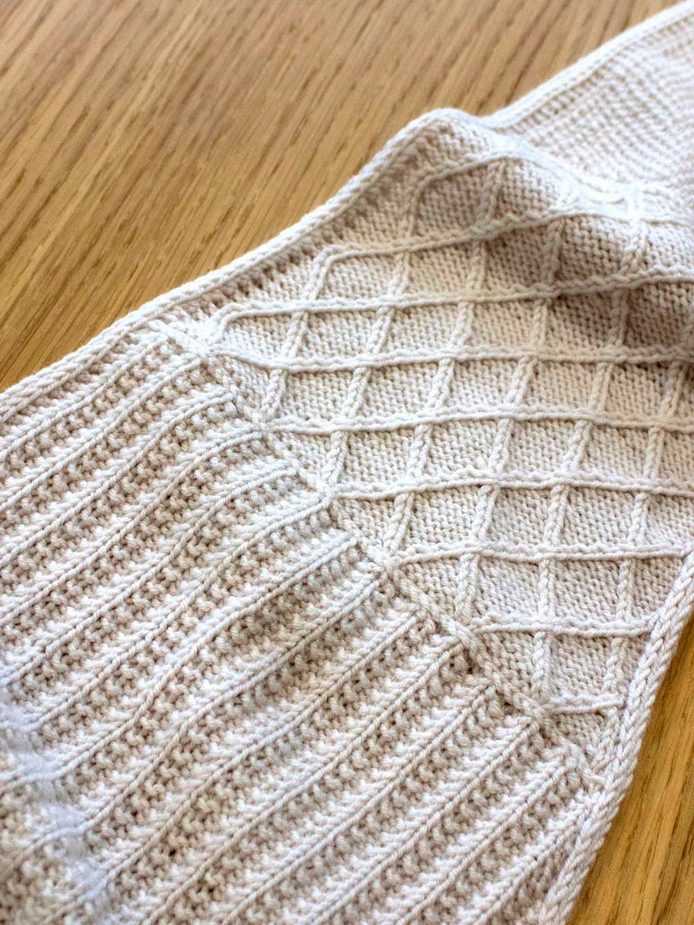 Das durchdachte Design des Berlin-Tuches hört hier nicht auf. Es ist mit 6 verschiedenen Techniken und Mustern gestrickt, die das detaillierte Tuch wirklich interessant machen. Das Tuch wird schön mit einer I-Cord-Kante abgeschlossen. Jedes Muster wird durch eine Reihe mit vertikalen Maschen getrennt, zu der wir eine Videoanleitung erstellt haben, die du hier finden kannst.
