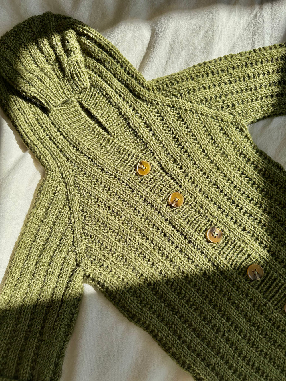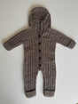 Für das beste Ergebnis empfehlen wir, die Maschenprobe zu überprüfen: 21 Maschen x 32 Reihen auf 10x10 cm im Doppelperlrippenmuster, typischerweise erreicht mit 4 mm Nadeln. Der Anzug ist in 7 Größen von 0–2 Monaten bis 18–24 Monaten erhältlich und oversized gestaltet, sodass er locker sitzt und über Kleidung getragen werden kann.